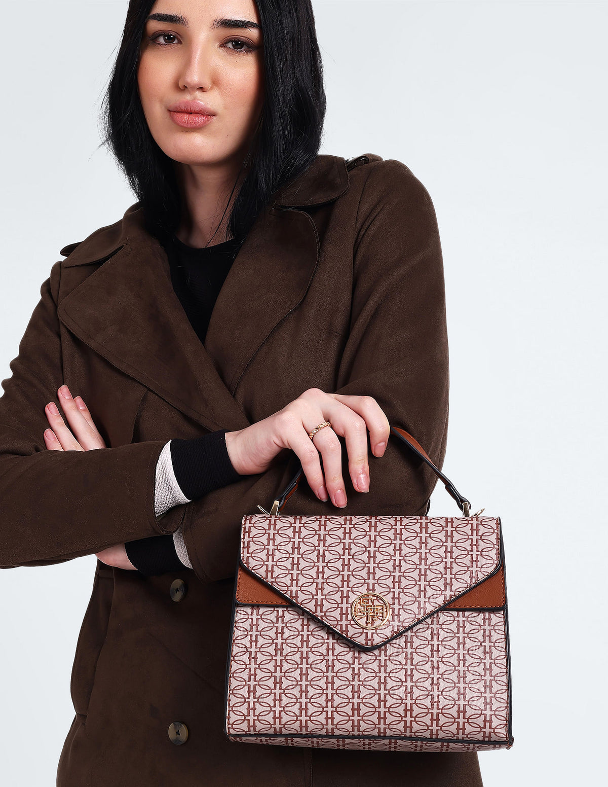 Story: Big enough to fit all your essentials, this sling from the Glamazon collection comes with a PU construction, metallic hardware and an all-over printed pattern.