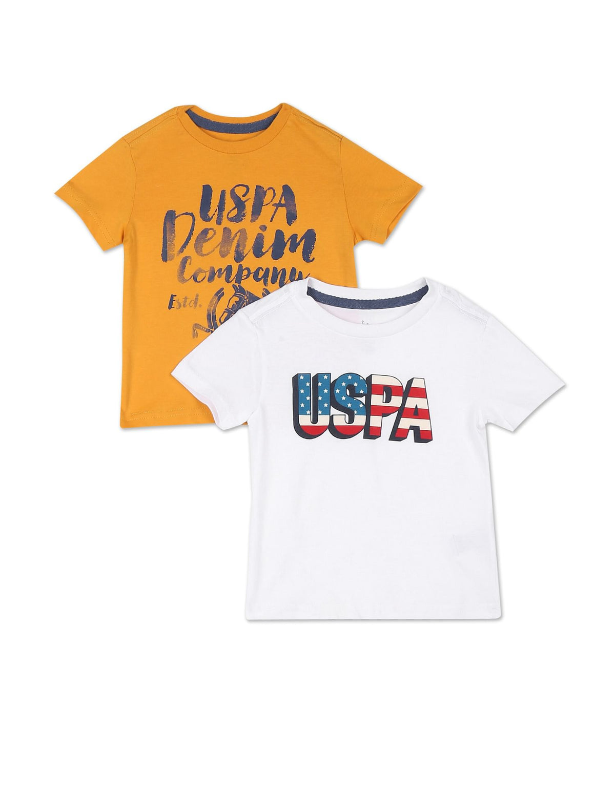 Boys Assorted Cotton Brand Print T-Shirt - Pack Of 2