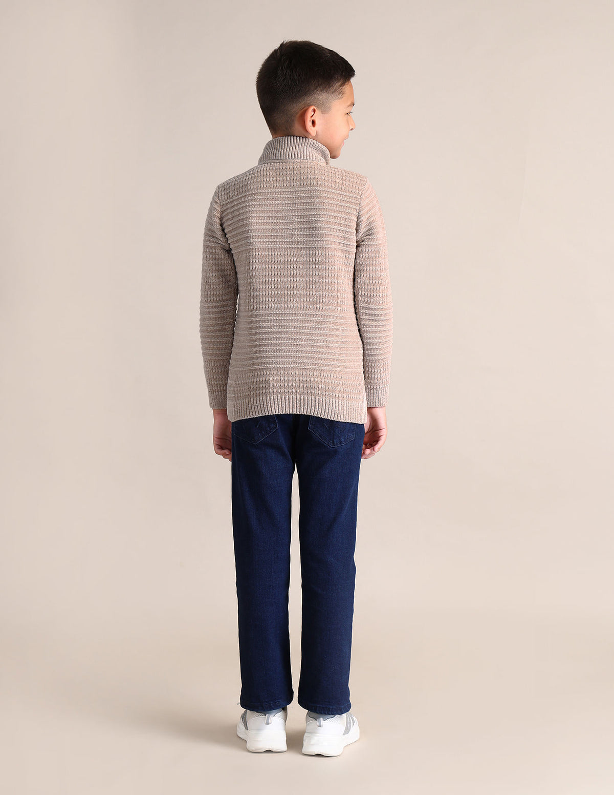 | Polo collar | Small zip placket | Logo at chest | Long sleeves | Patterned knit | Knitted | Regular fit |