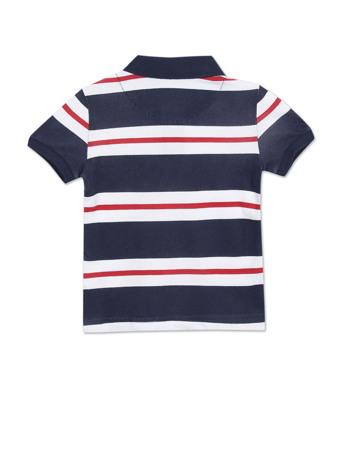Boys Dark Blue And White Pique Striped Polo Shirt