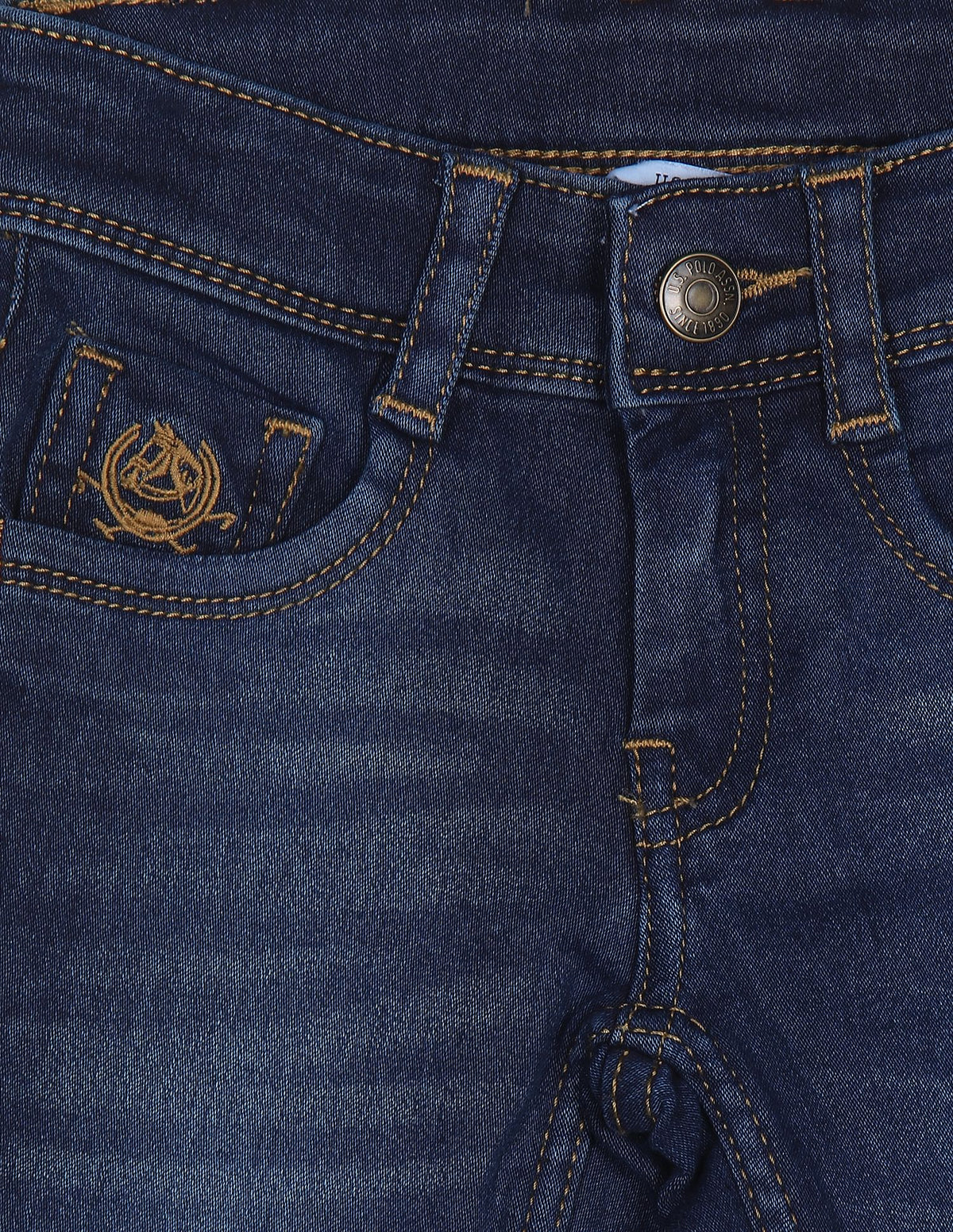 Boys Dark Blue Mid Rise Stone Wash Jeans