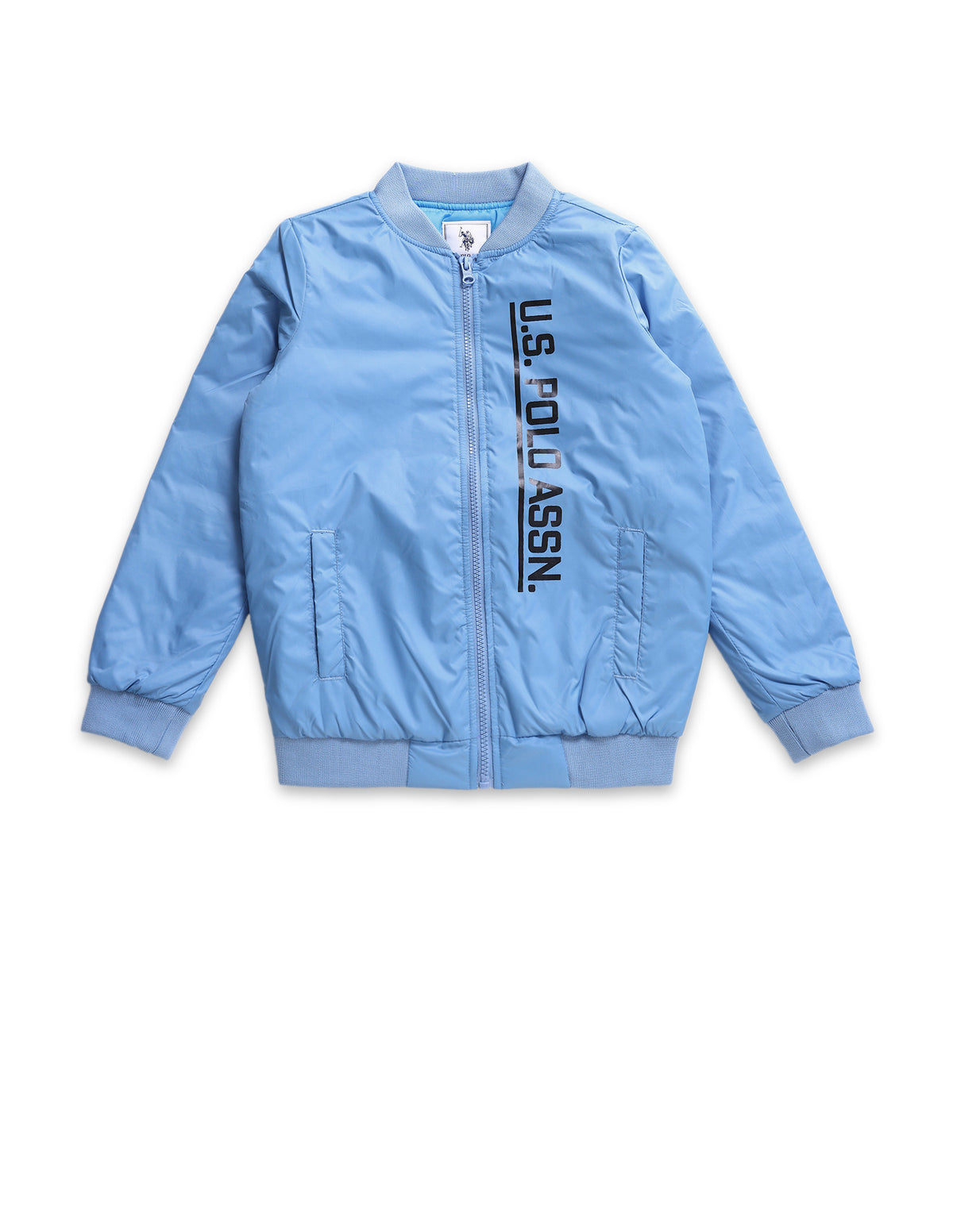 Boys Light Blue Stand Collar Solid Bomber Jacket