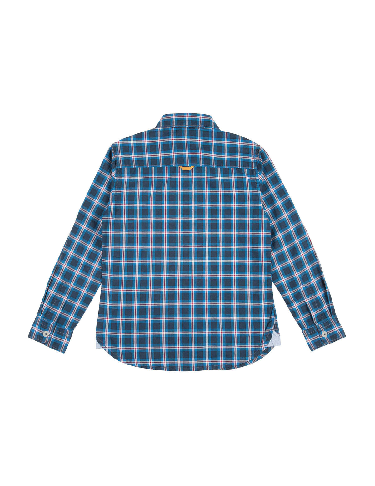 | Spread collar | Embroidered brand logo at chest | Long sleeves with rounded cuffs | Roll-up tabs | Checked