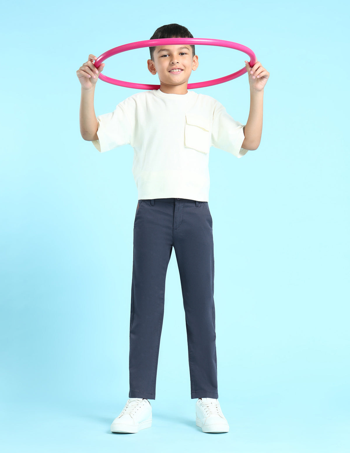 Boys Navy Mid Rise Solid Twill Trousers