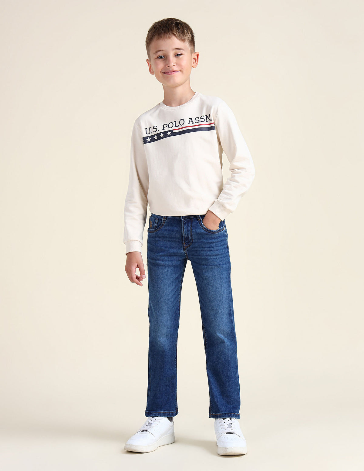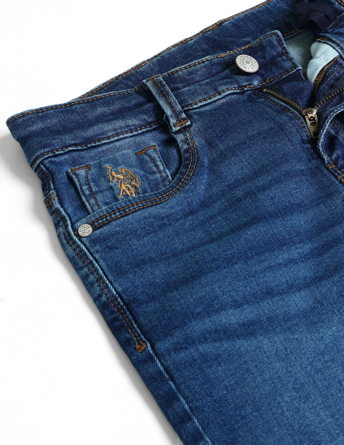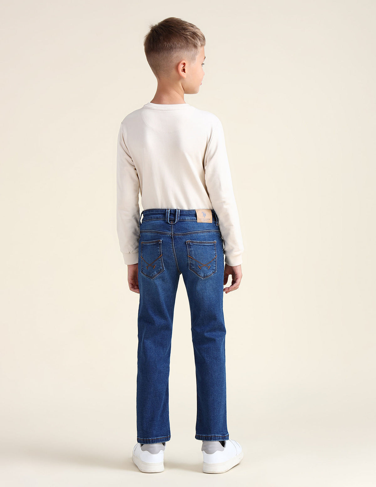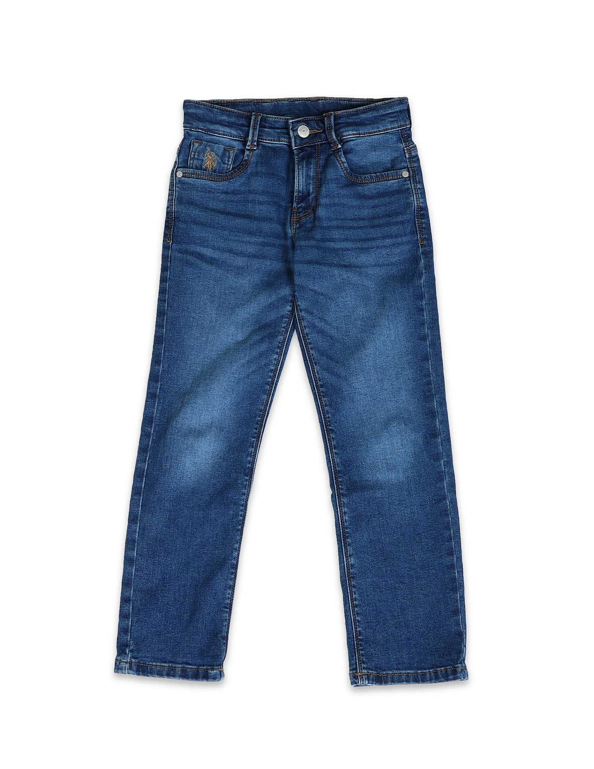 | Mid-rise waist | Button and zip fly closure | Five pockets | Stonewashed | Denim weave | Relaxed fit |