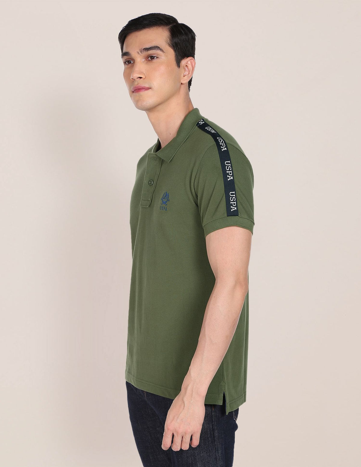 Brand Tape Solid Cotton Polo Shirt