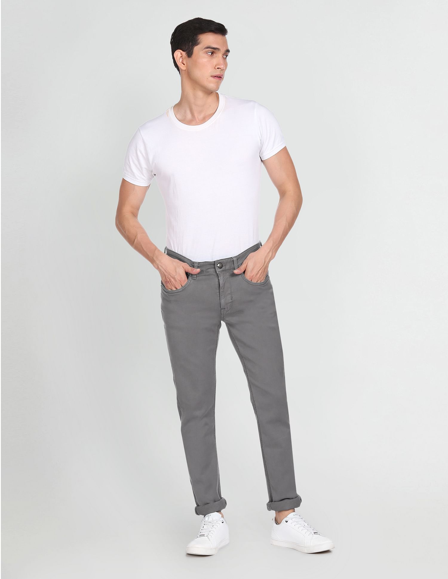 Story: These comfortable and stretchy jeans are cut in a slim-tapered silhouette, easy to pair, and make an impeccable choice for a casual day out.