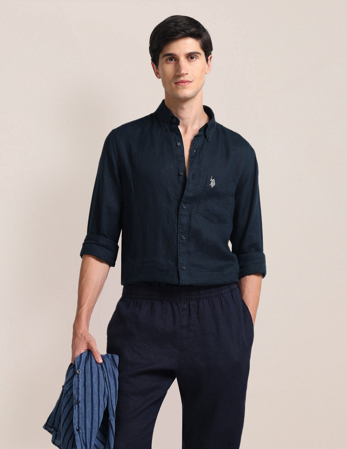 Story: Give your casual shirt repertoire a new look with this solid shirt form the Premium collection, featuring a tailored fit.