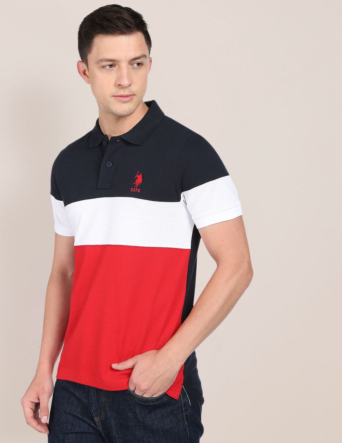 Colour Block Cotton Polo Shirt