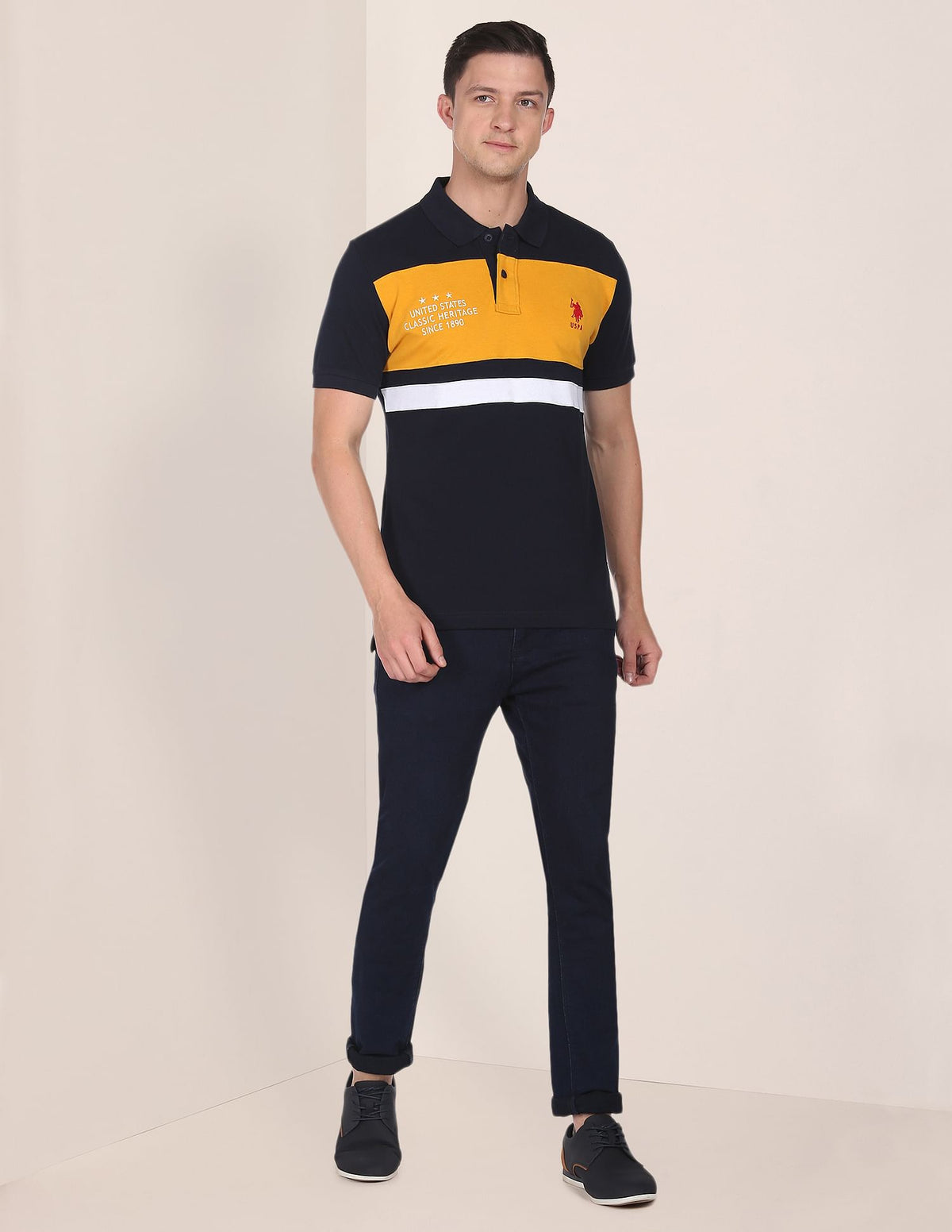 Colour Block Panelled Cotton Polo Shirt