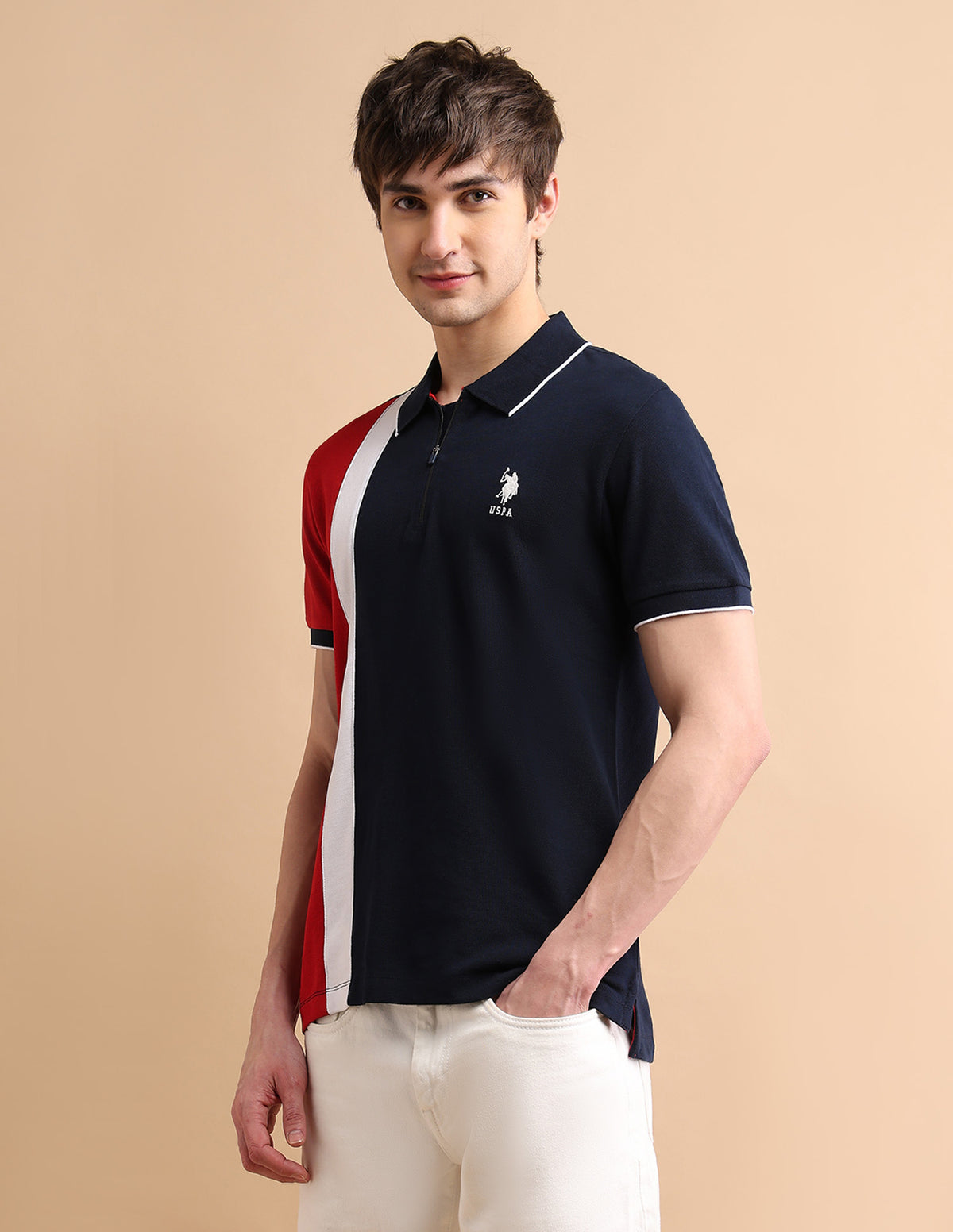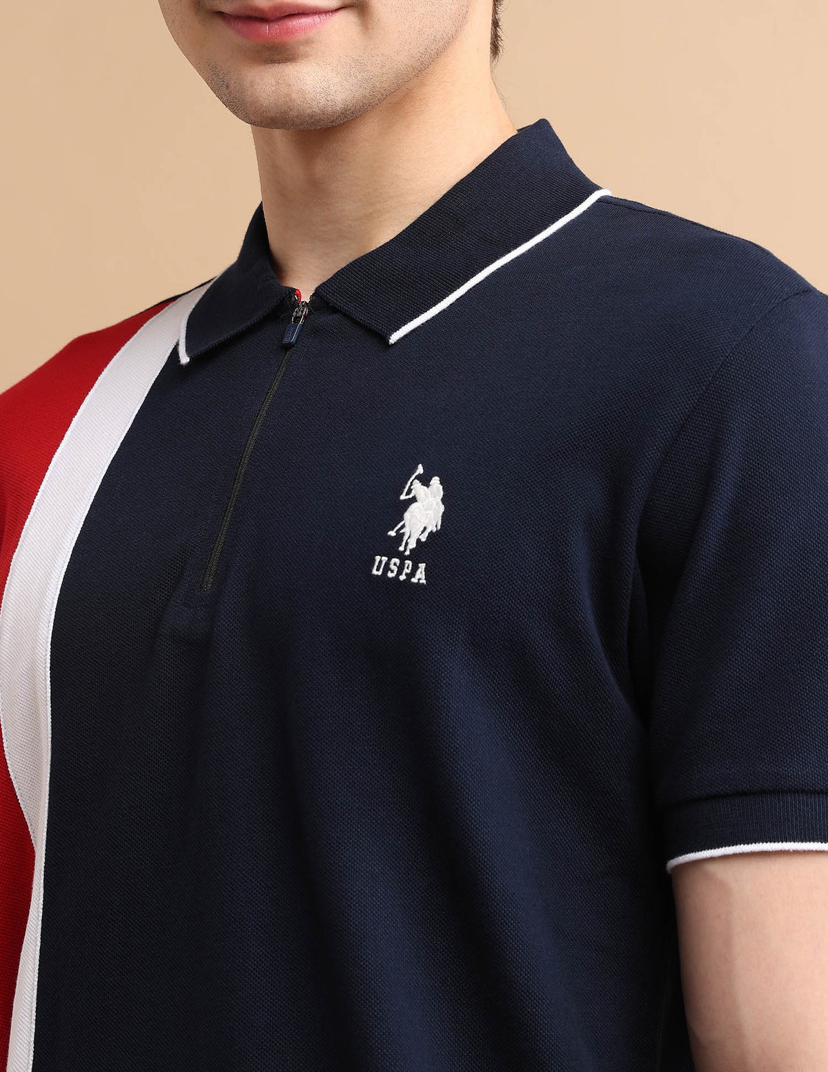Colour Block Zipper Polo Shirt
