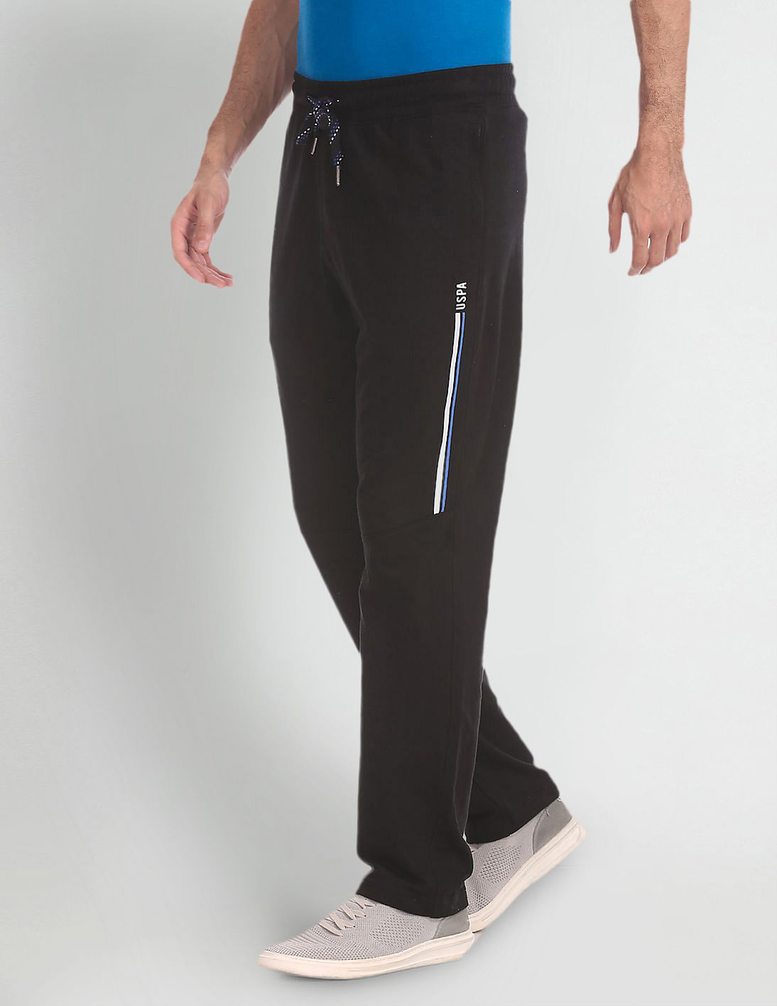- Signature stripes at left leg