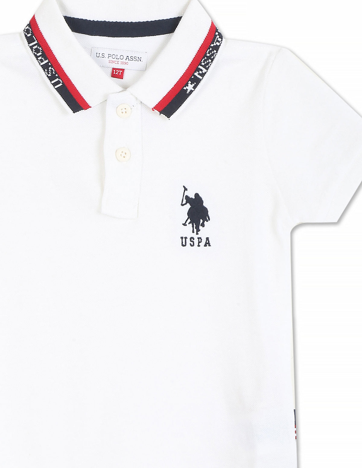 Story: The vibrant hue of this polo shirt is sure to stand out in his casual closet and the conventional design includes a ribbed collar, short button placket, short sleeves and a logo at the chest for signature style.