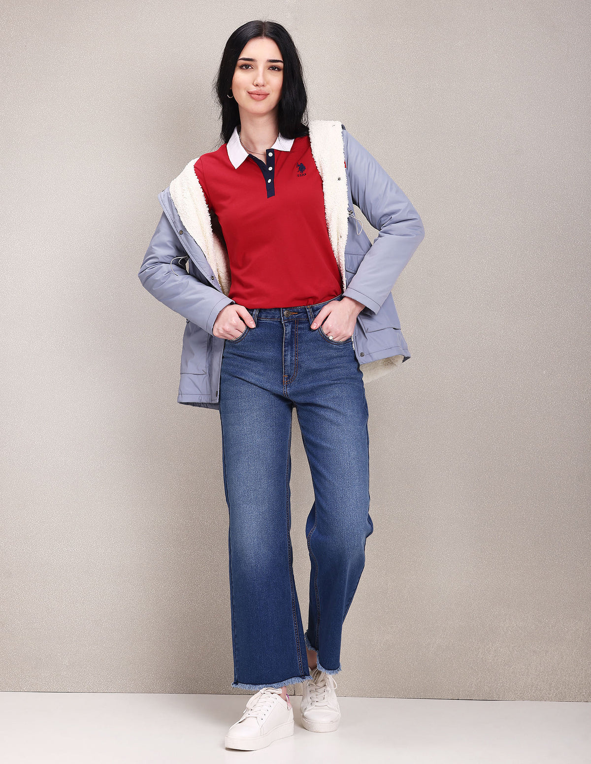 Story: This solid polo comes in a vibrant hue that instantly brightens up your day and a comfy fabric composition.