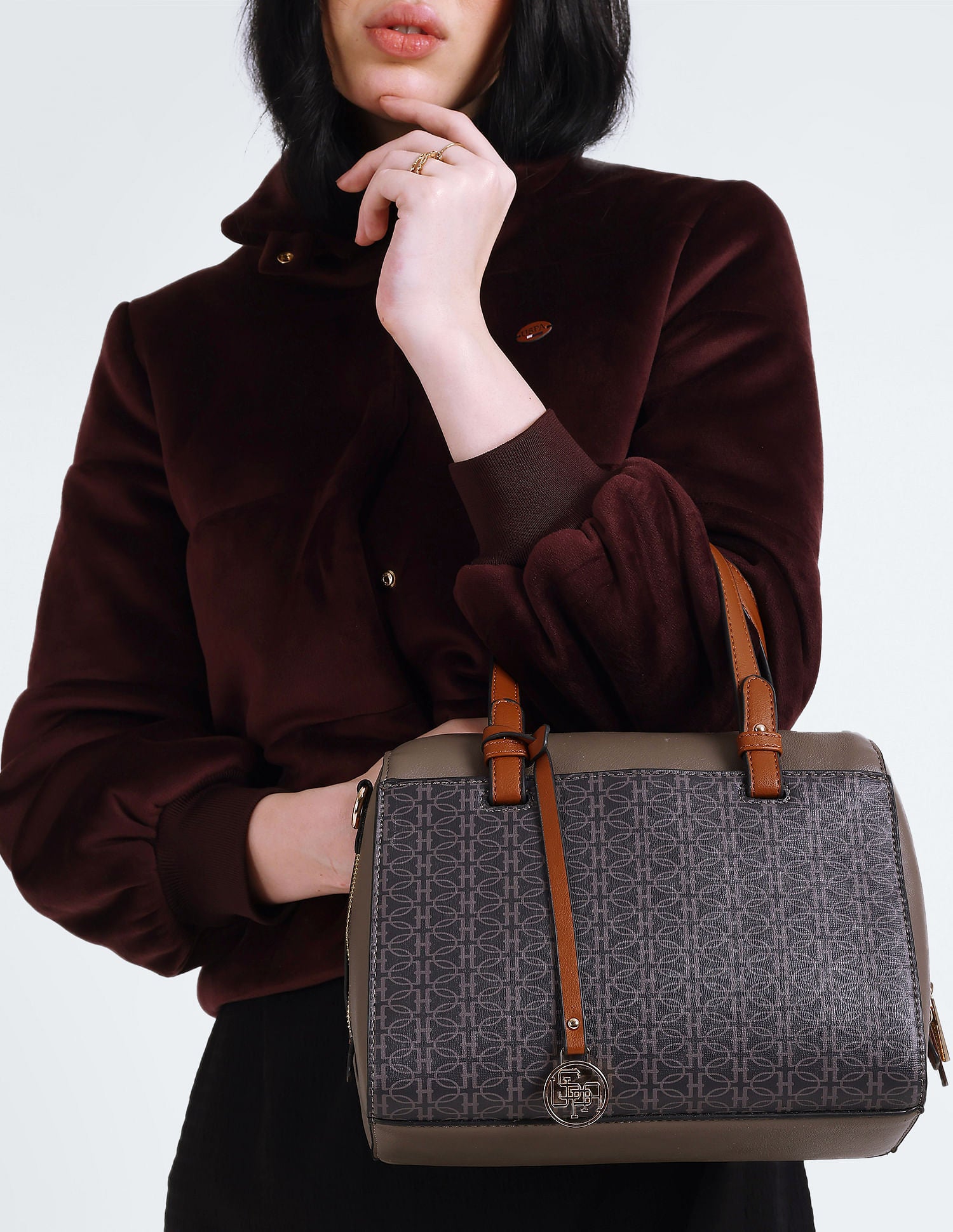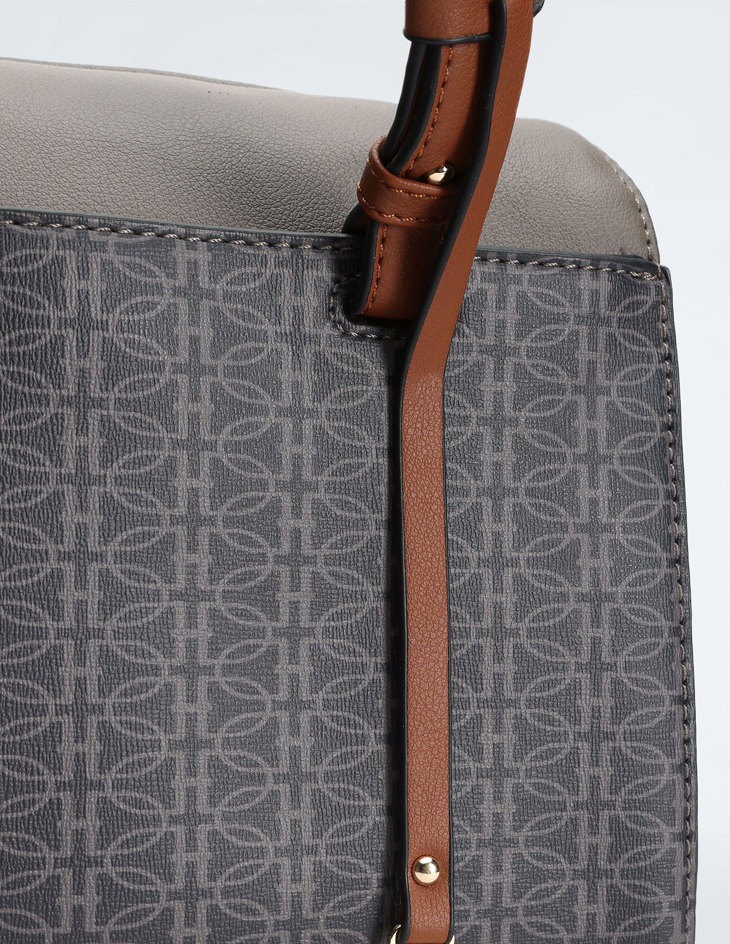 Story: This printed bowler handbag from the Glamazon collection is spacious enough for all your essentials and features an exterior pocket at the front.