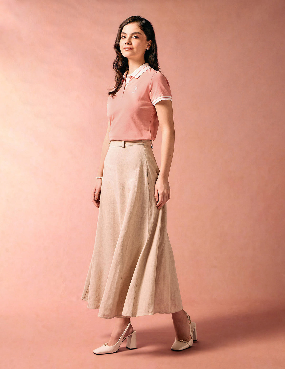 Story: The Victorian Reverie range brings classic styles to life with a hint of Victorian elegance. Perfect for adding a touch of vintage-inspired grace to contemporary wardrobes.? A stylish addition to your wardrobe, this polo collar tee features a logo at the chest, a short button placket, and contrasting striped details on the collar, placket, and sleeve hems. Crafted in smooth pique knit fabric, it offers a comfortable regular fit with a straight hemline, perfect for casual yet polished outfits.