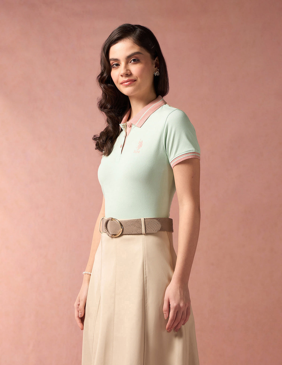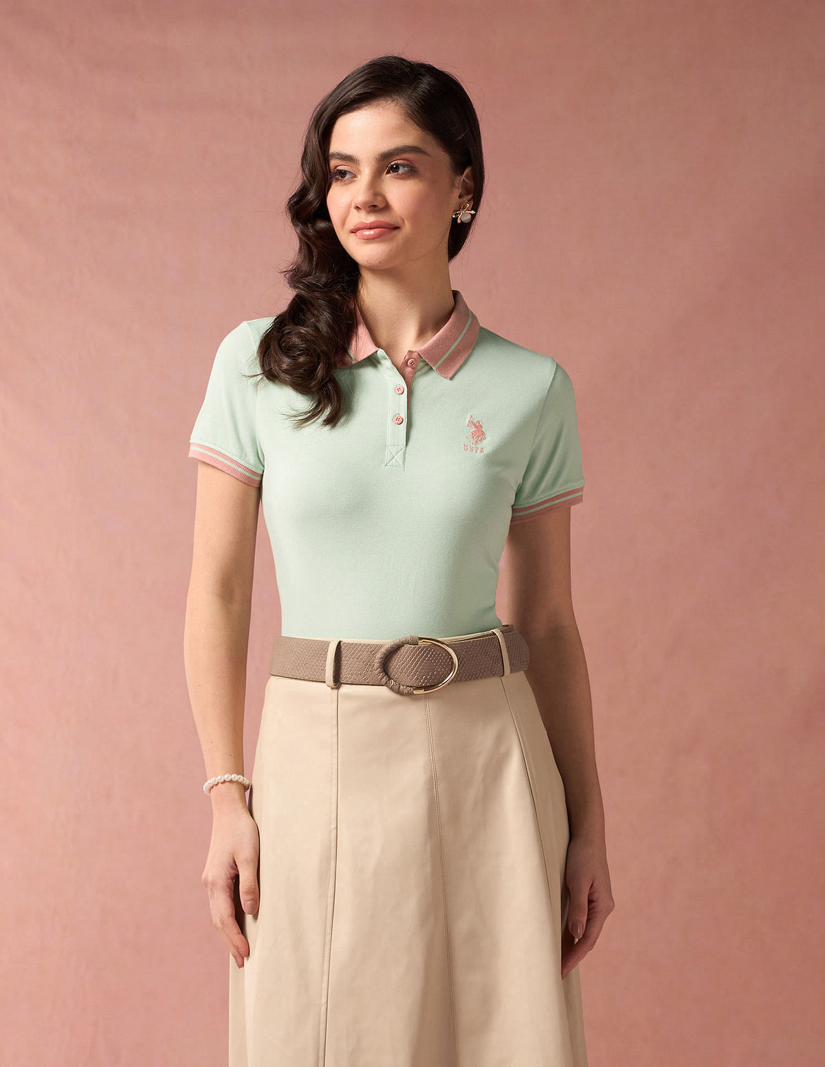 | Polo collar | Logo at chest | Short button placket | Short sleeves | Contrast striped collar, placket and sleeve hems | Straight hemline | Solid pattern | Pique knit | Regular fit | Country Of Origin - India