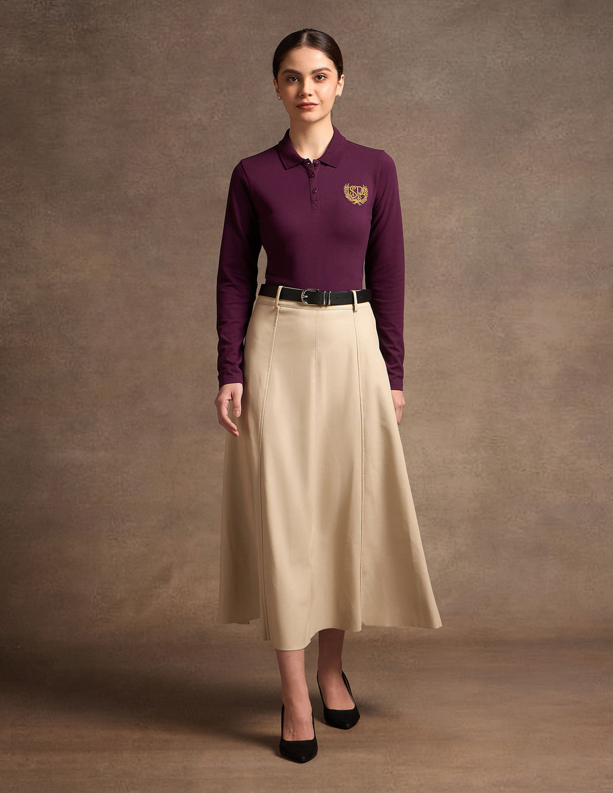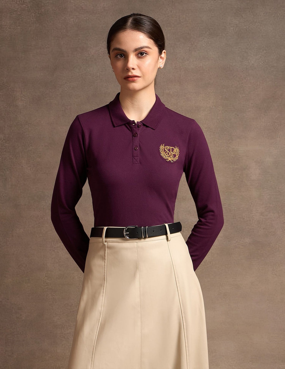 | Polo collar | Embroidered logo at chest | Short button placket | Long sleeves | Straight hemline | Solid pattern | Pique knit | Regular fit | Country Of Origin - India