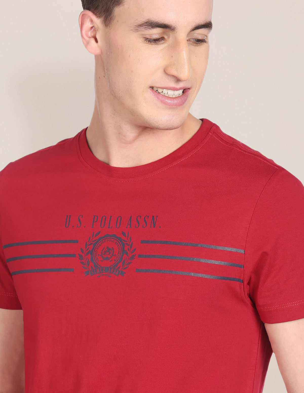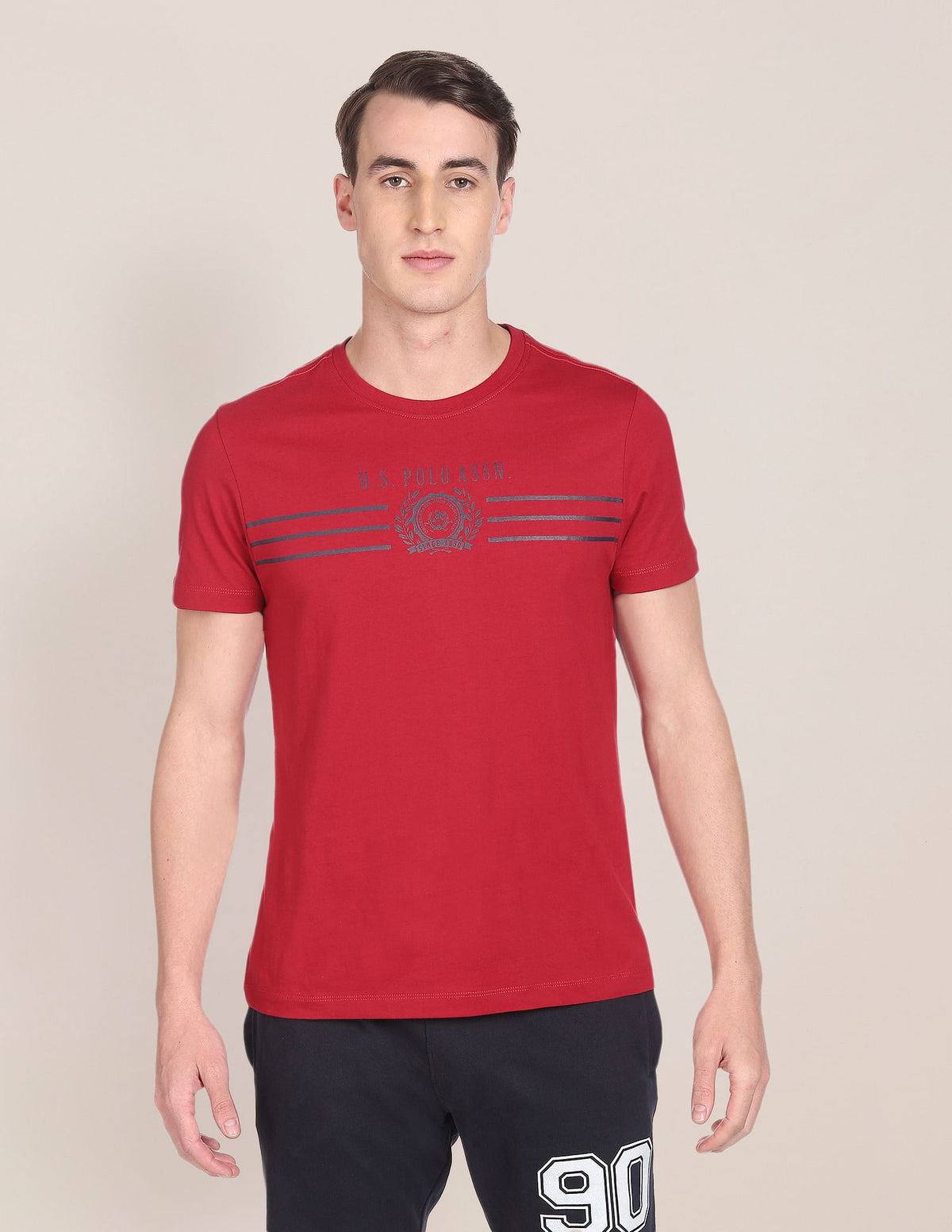 Crew Neck Brand Print Cotton T-Shirt