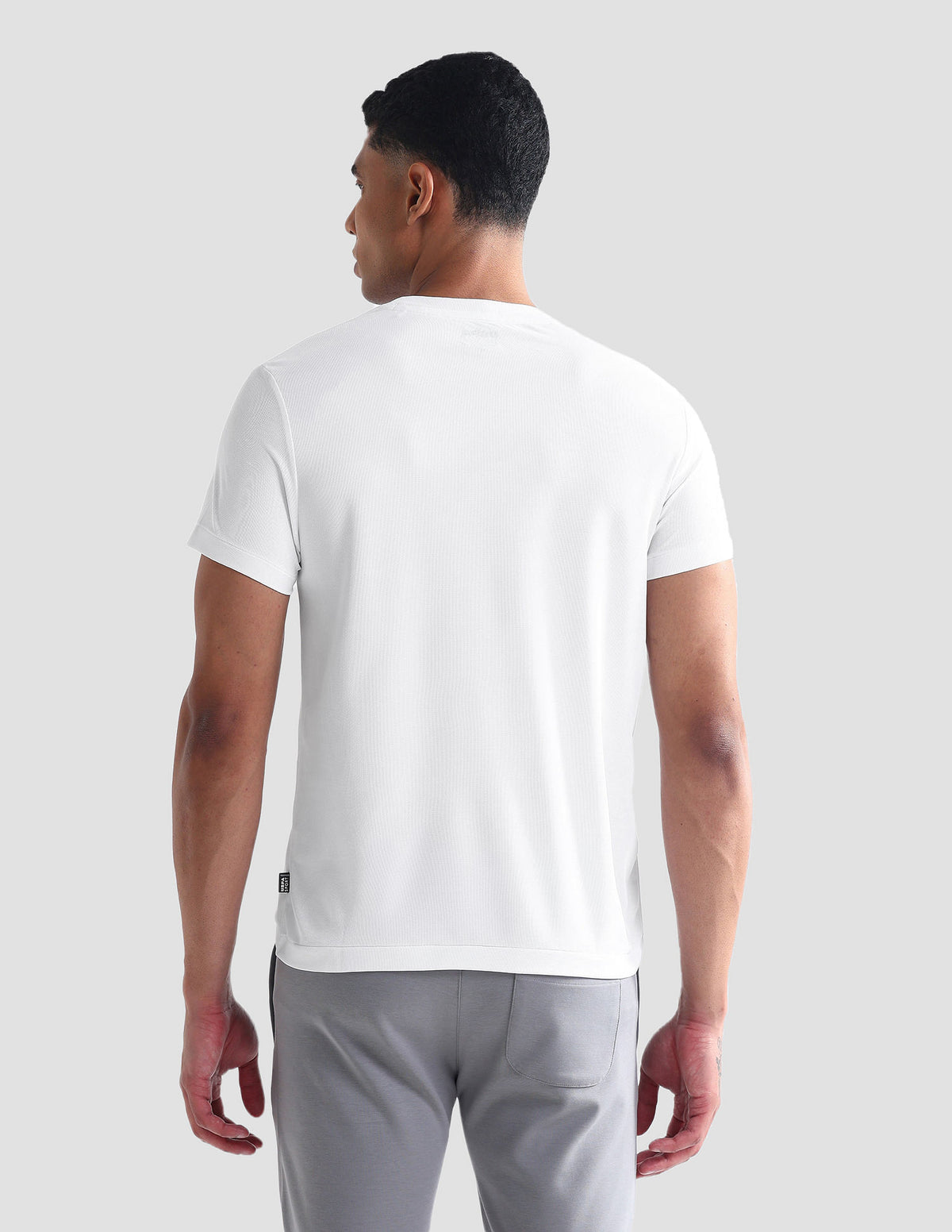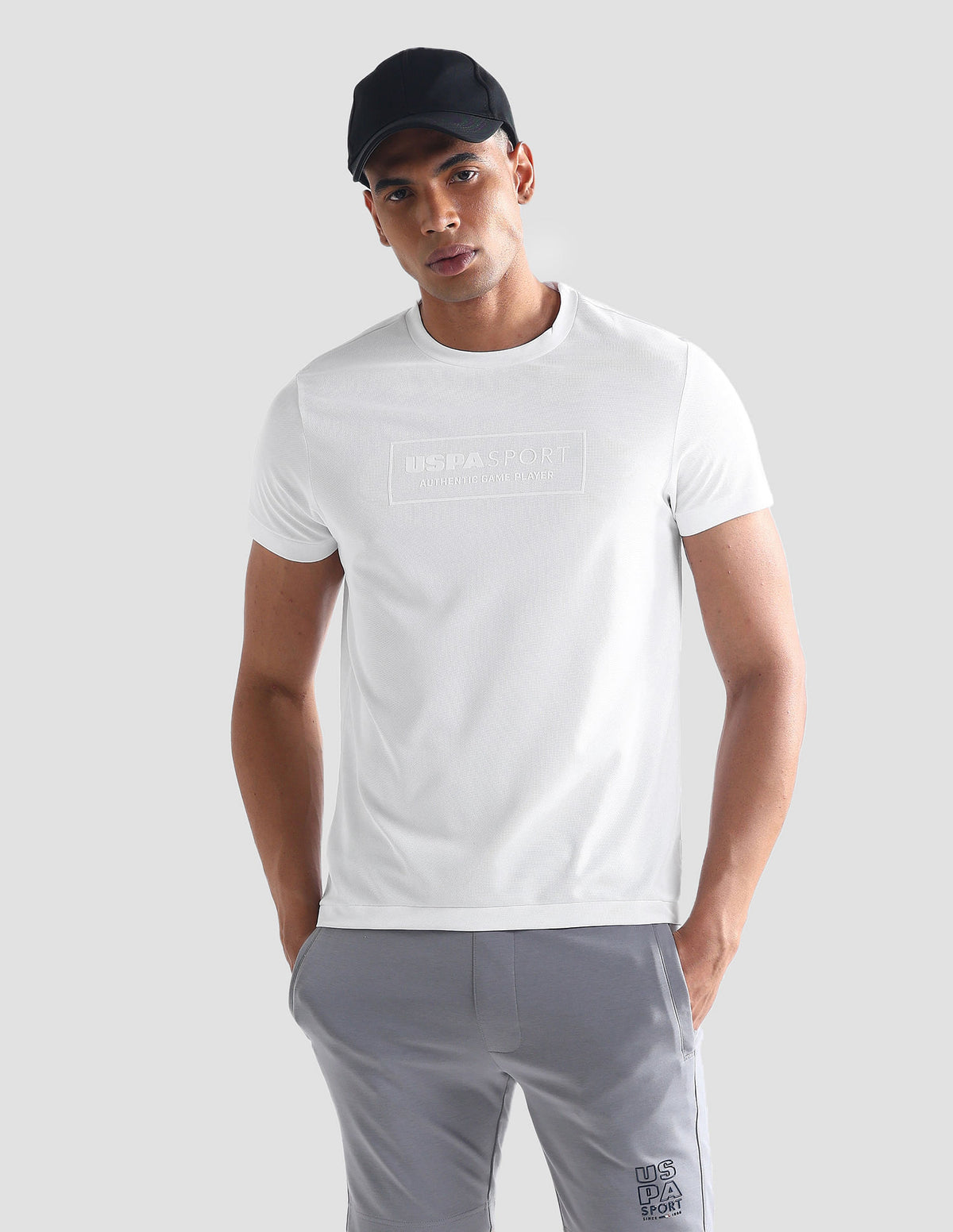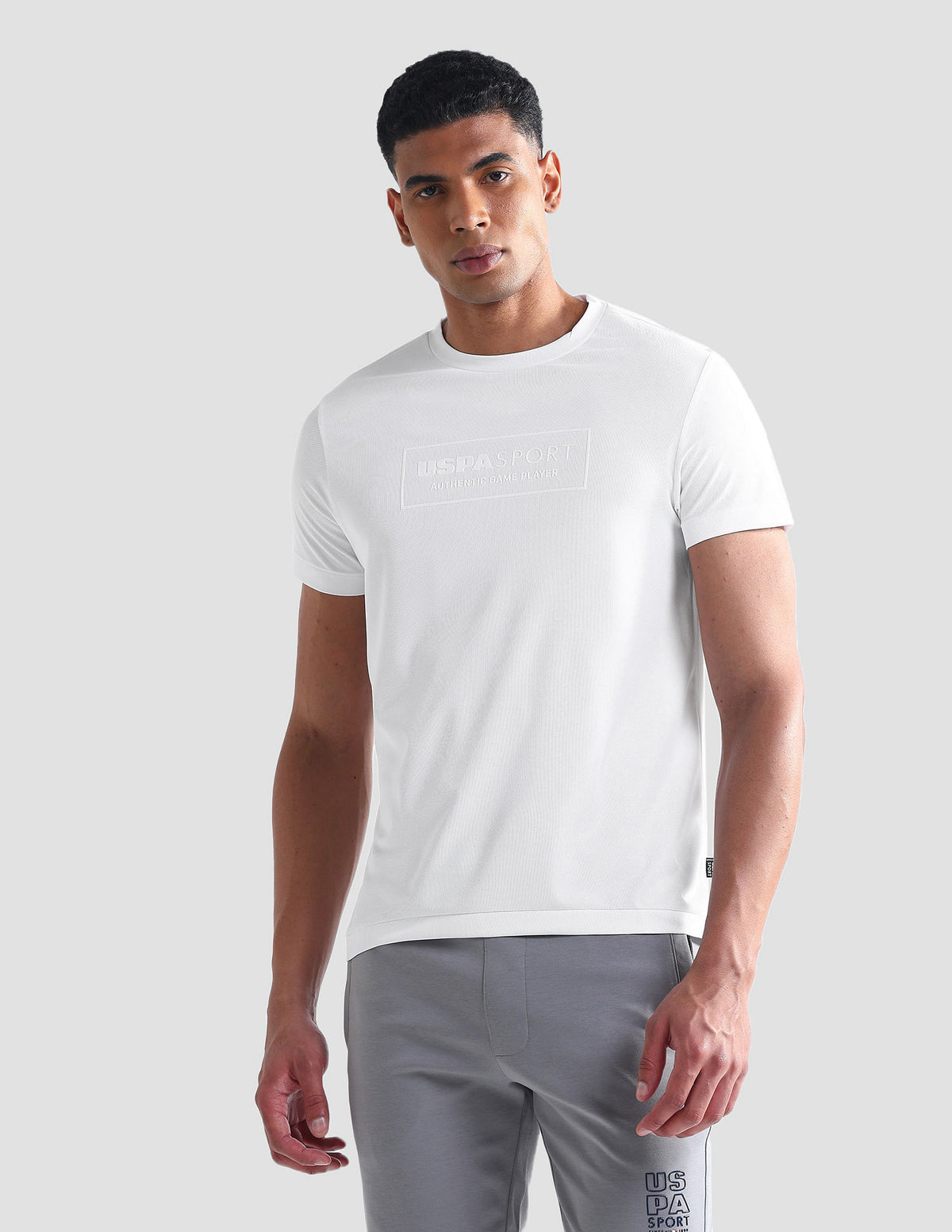 | Ribbed crew neck | Short sleeves | Straight hemline | Brand printed pattern | Honeycomb knit | Slim fit | Country Of Origin - India| AW-24| USPA Sport|