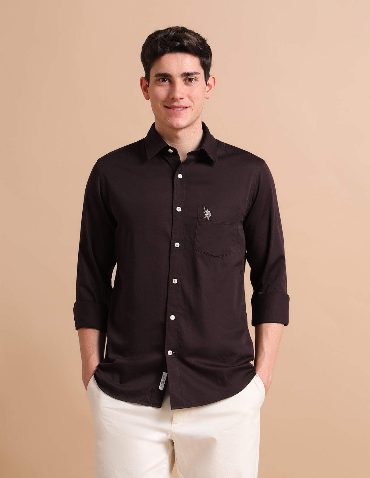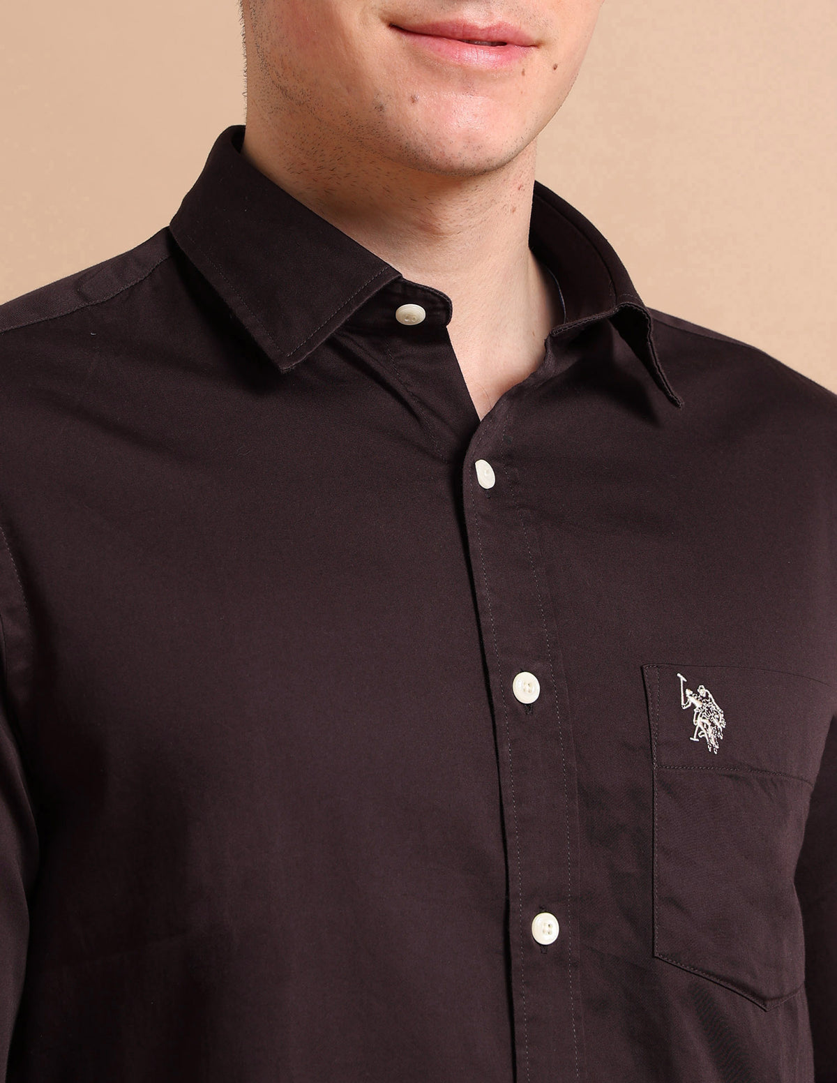Story: This tailored-fit shirt is cut from premium cotton and constructed in a satin weave which provides a distinct shine and smooth feel.