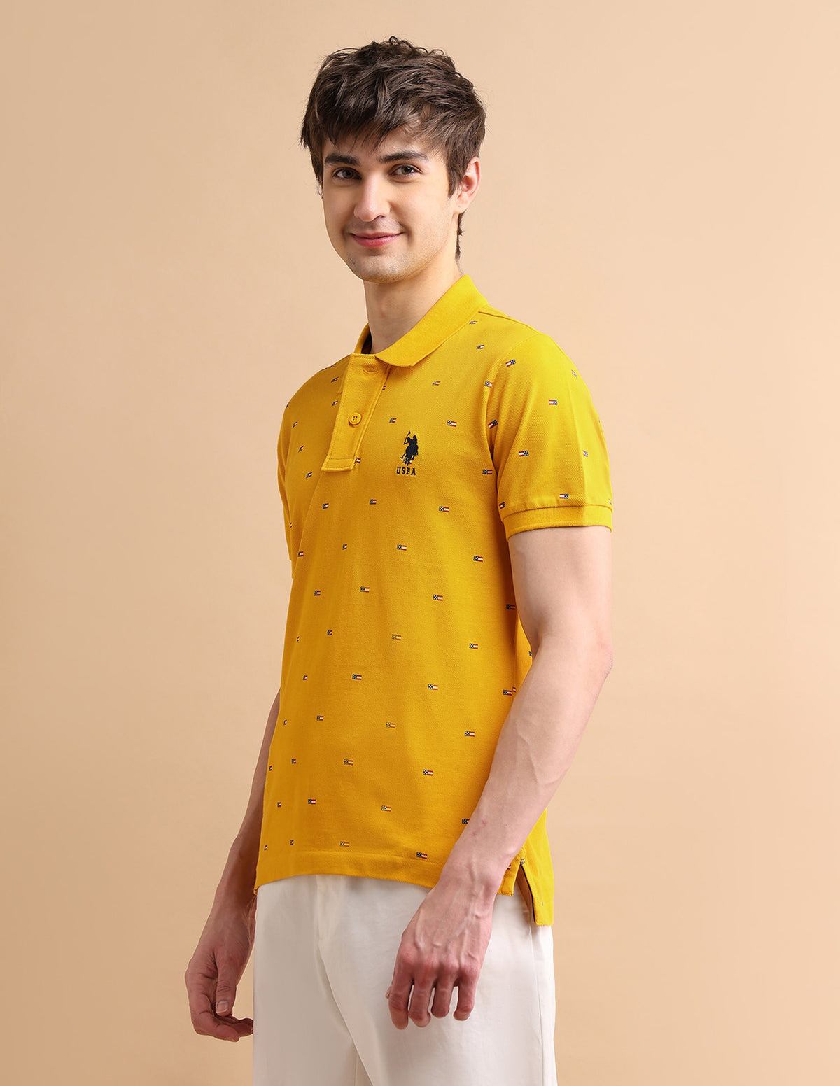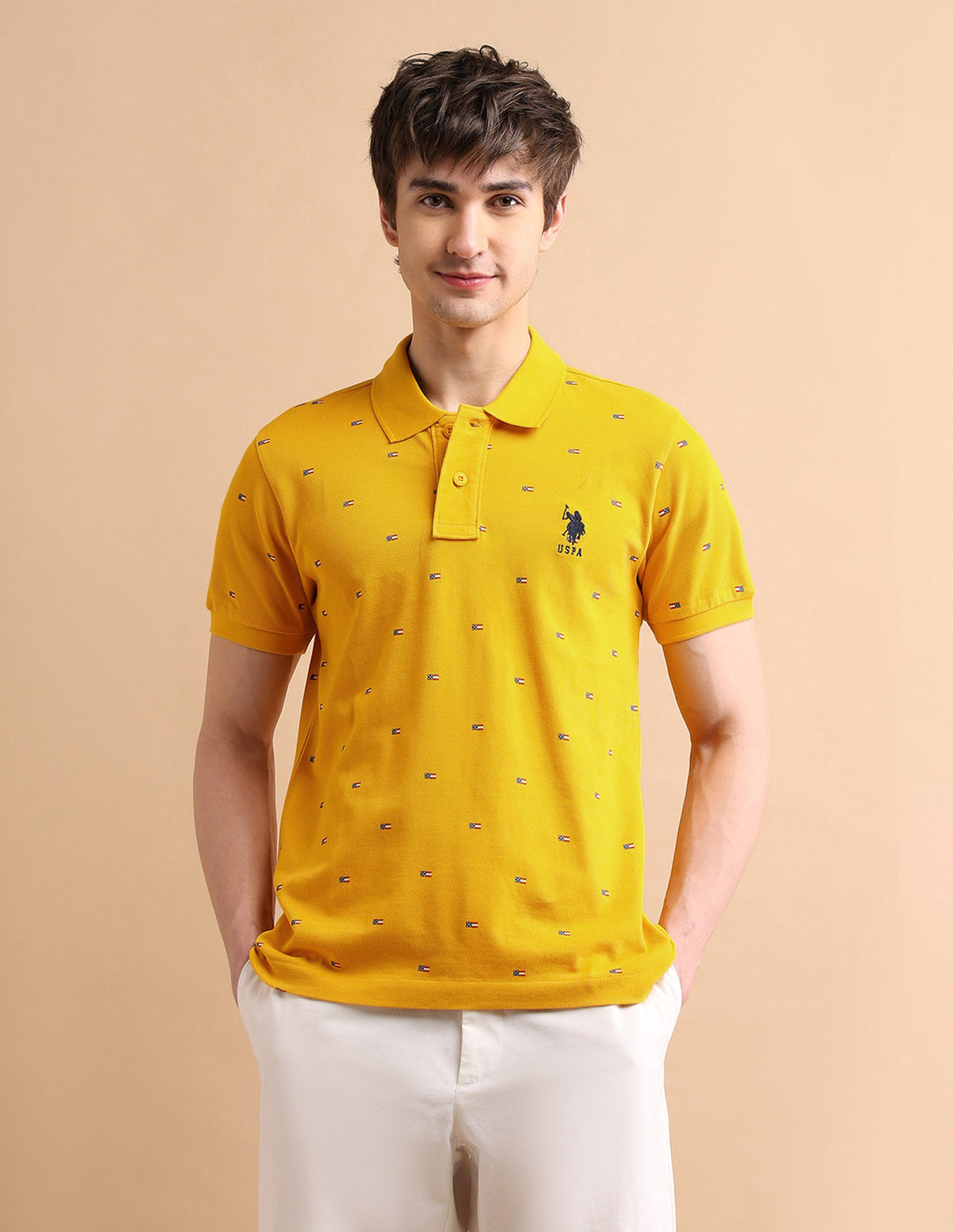Story: A must-have for long days, this soft and breathable polo shirt is decorated with a flag print all over for a classic style.