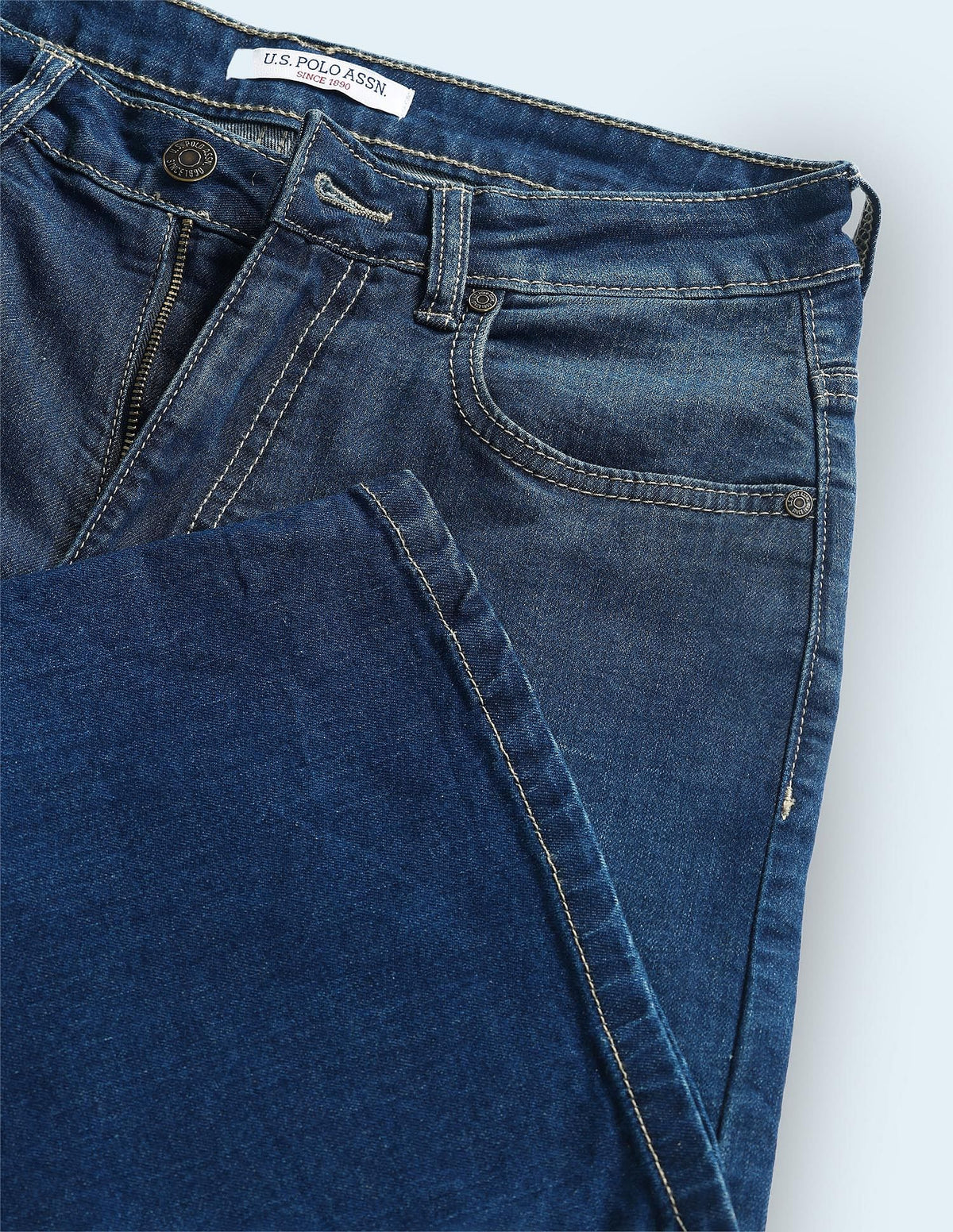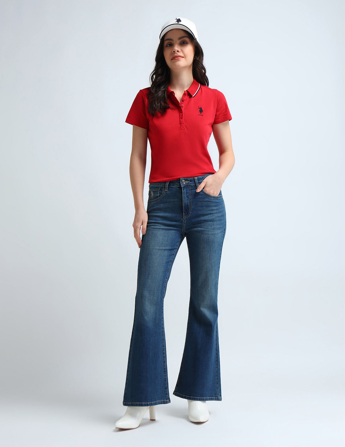 | Mid-rise | Button and zip fly closure | Five pockets | Stonewashed | Denim weave | Floor flared fit | Country Of Origin - India
