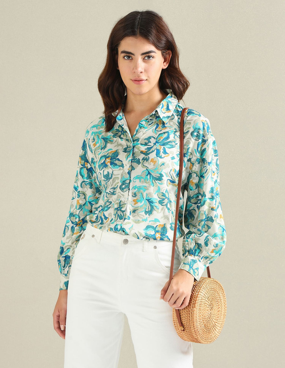 Floral Print Spread Collar Shirt