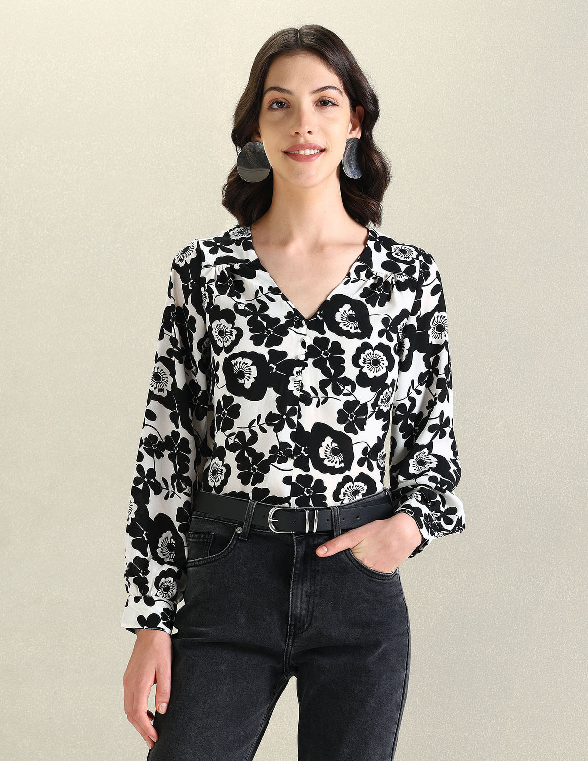 | V-neck | Long sleeves with buttoned hems | Straight hemline | Floral printed pattern | Woven | Regular fit | Country Of Origin - India