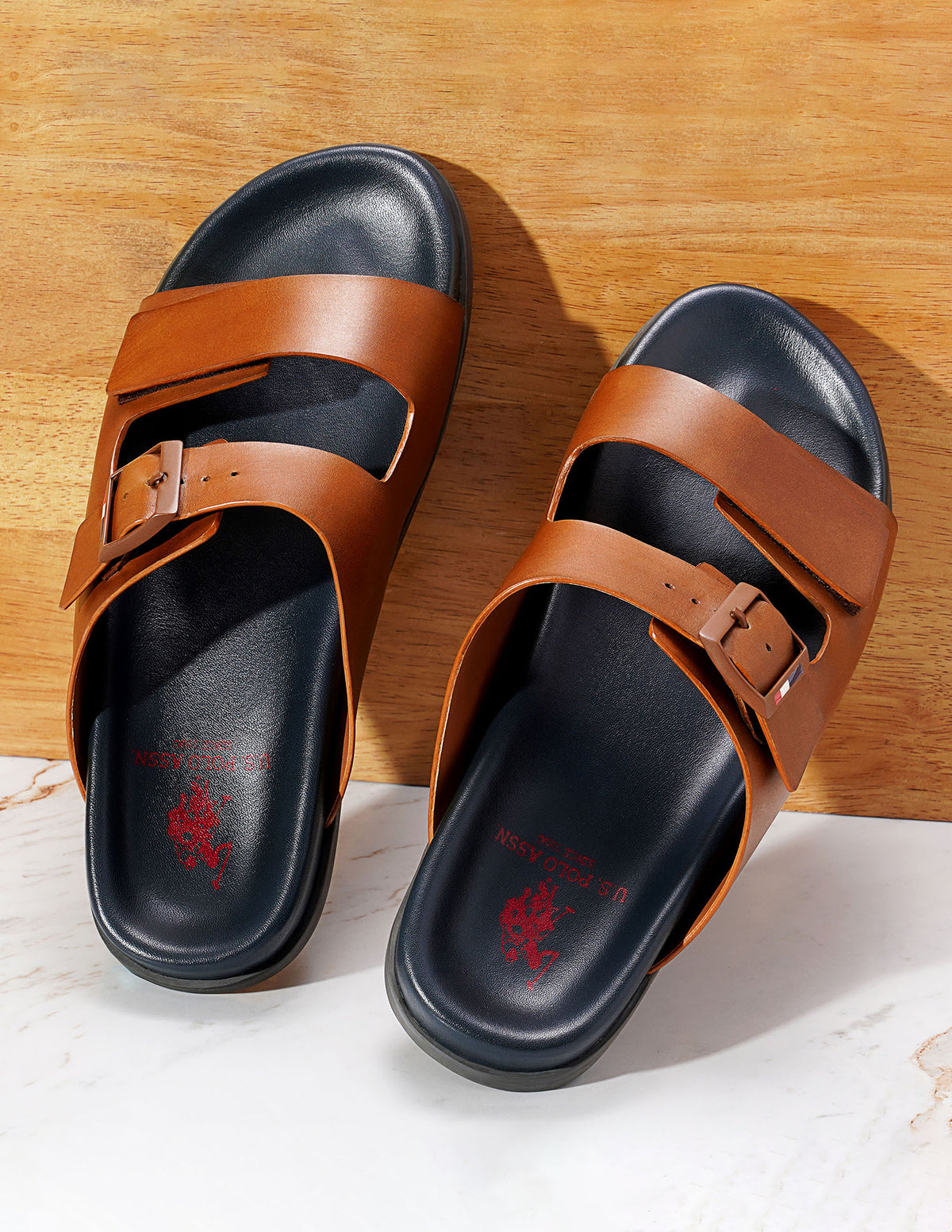 | Open toe | Double strap design with buckle closure | Cushioned footbed | Textured outsole |
