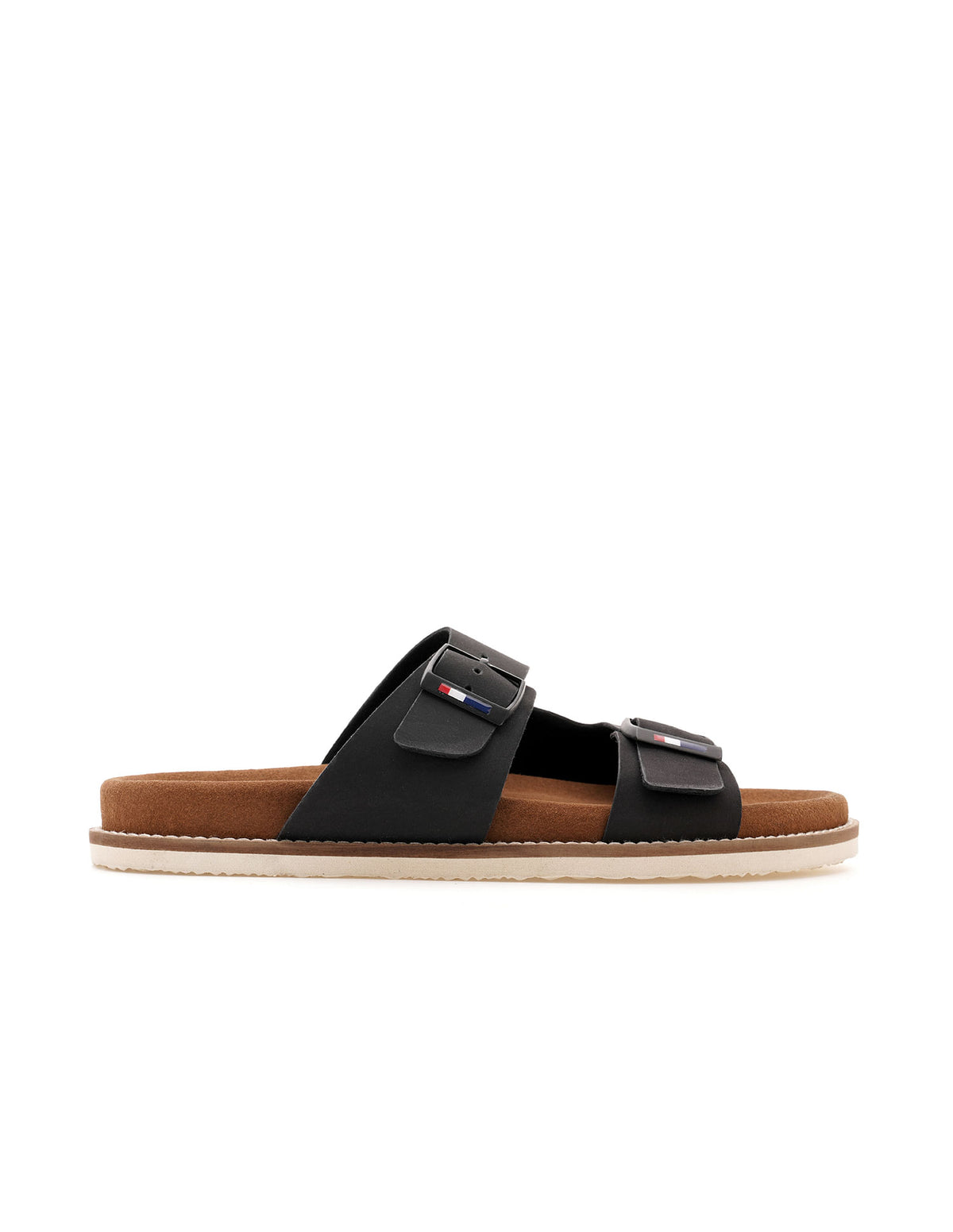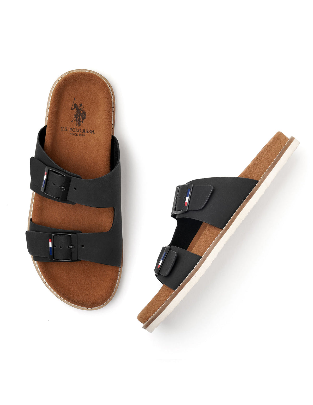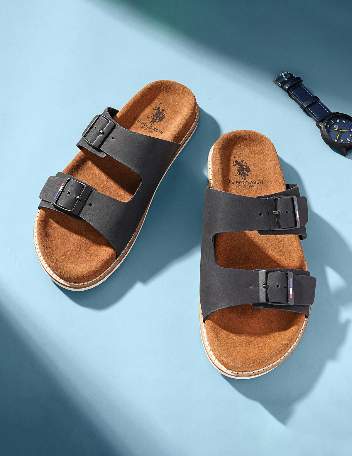 | Open toe | Double strap design with adjustable buckle closure | Cushioned footbed | Textured outsole |