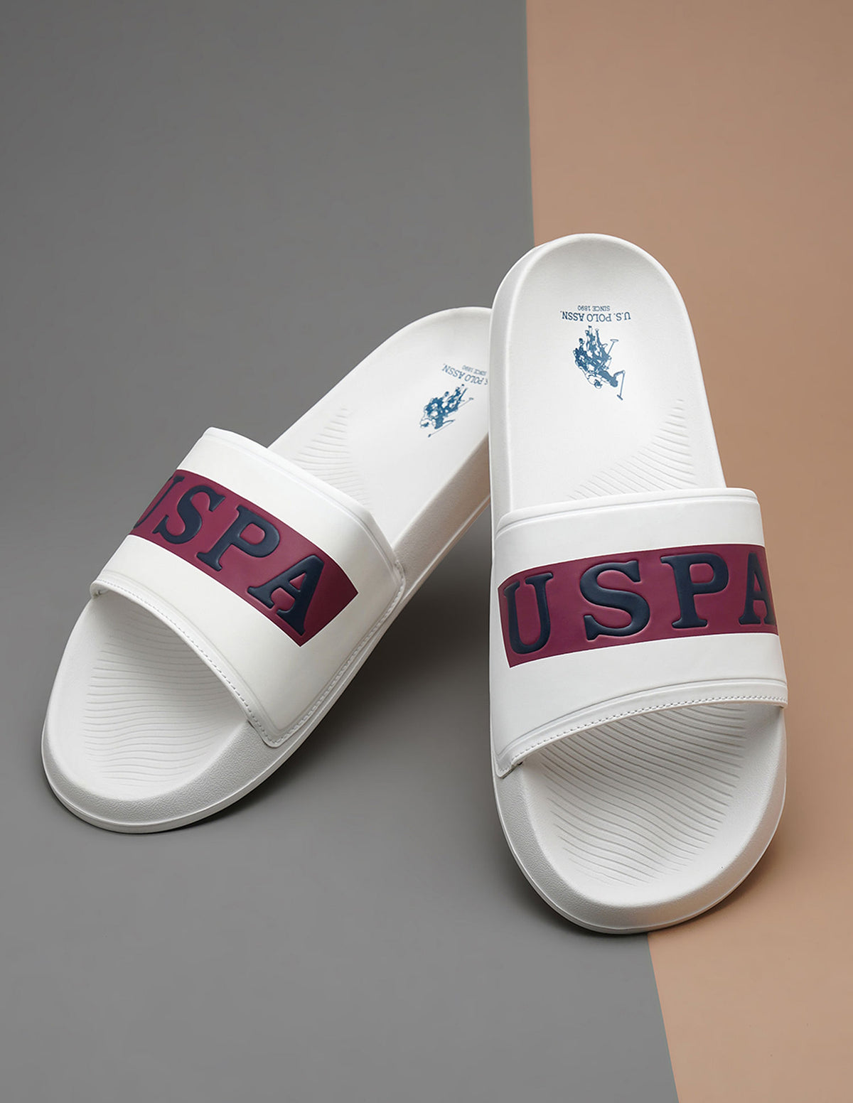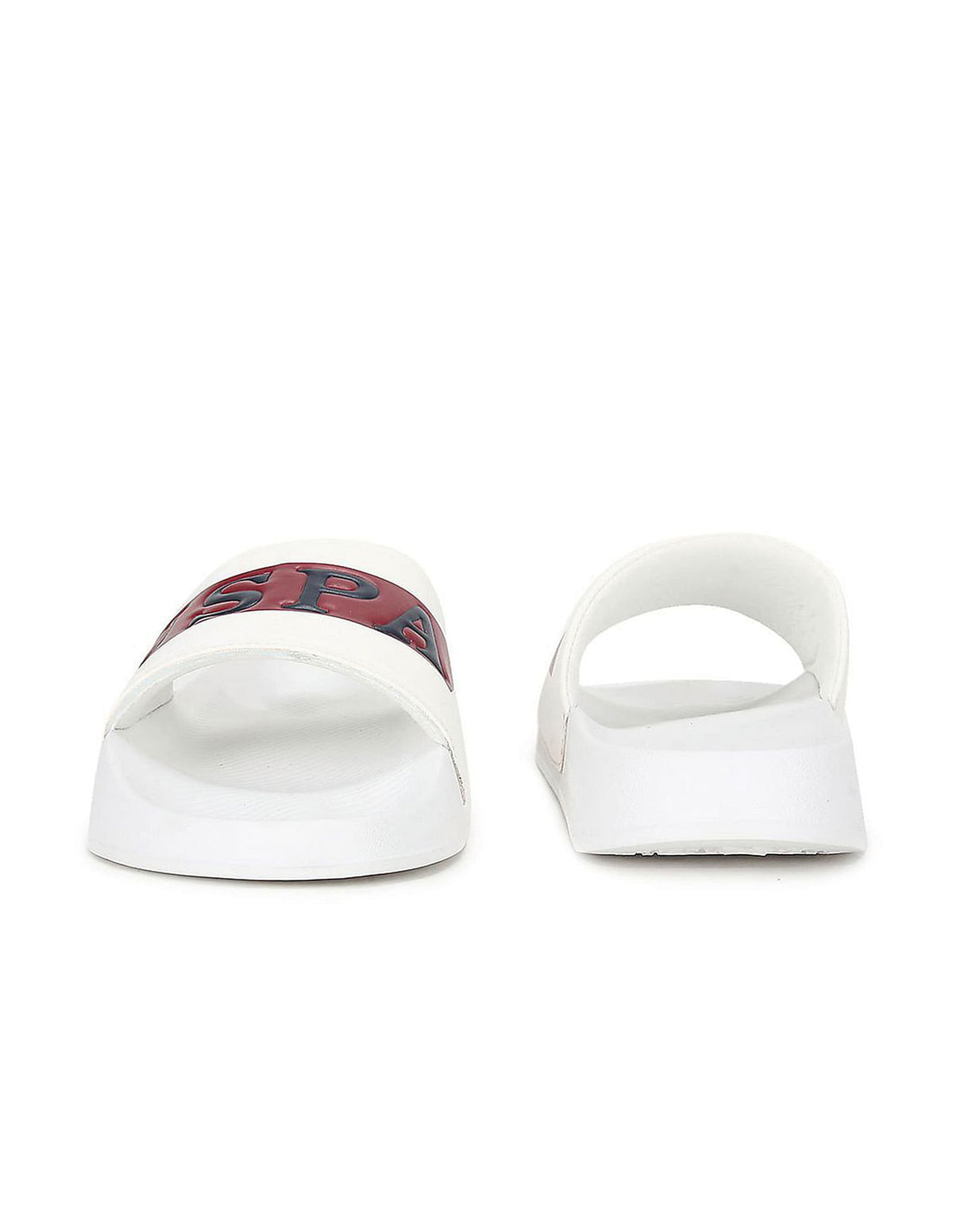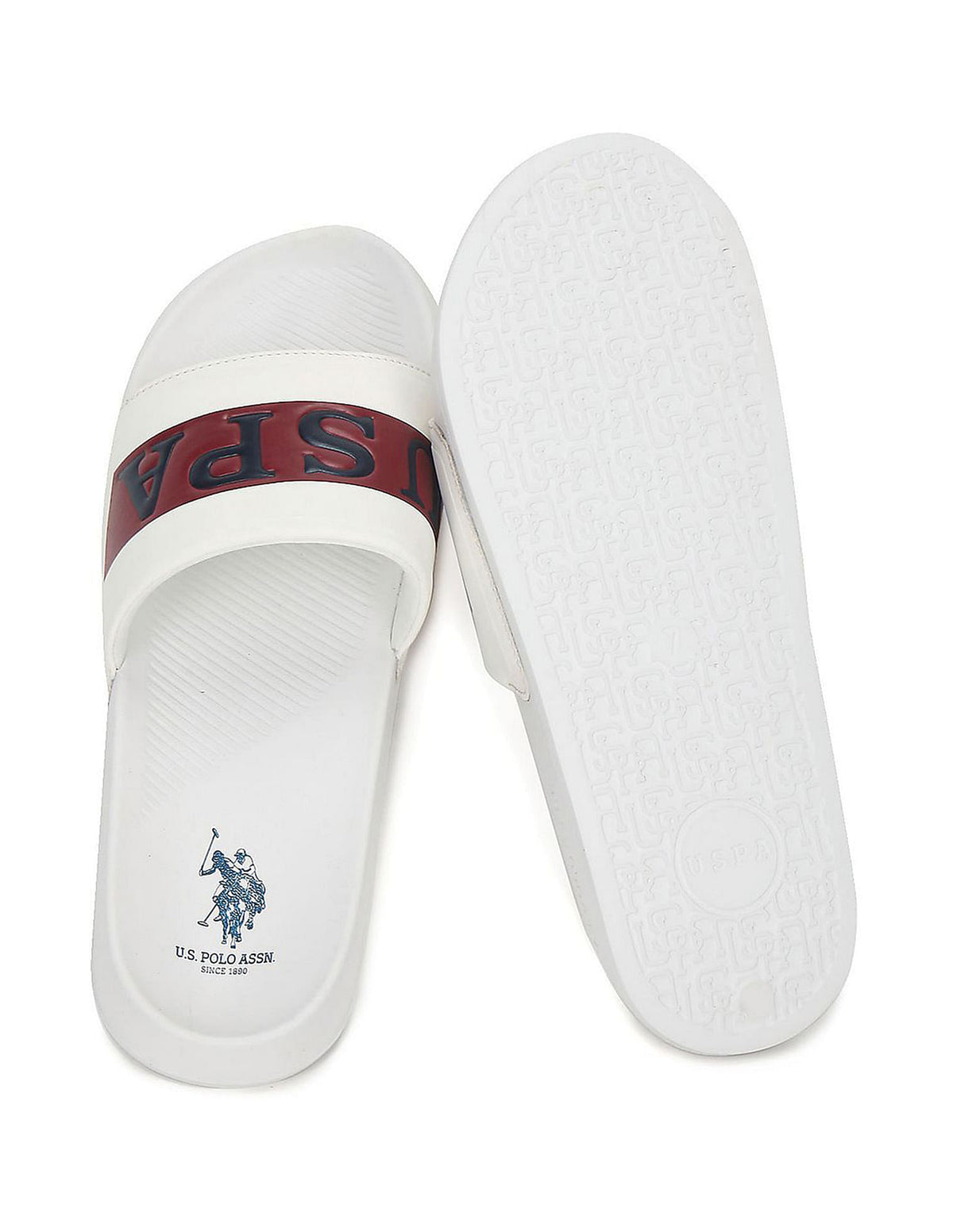 | Open toe | Logo at vamp strap | Cushioned insole with logo | Textured outsole | Brand printed pattern