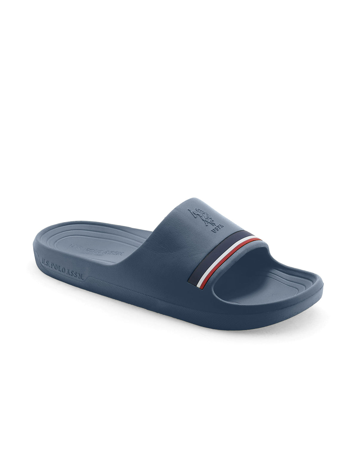 | Open toe | Logo at vamp strap | Cushioned insole with logo | Textured outsole | Brand printed pattern