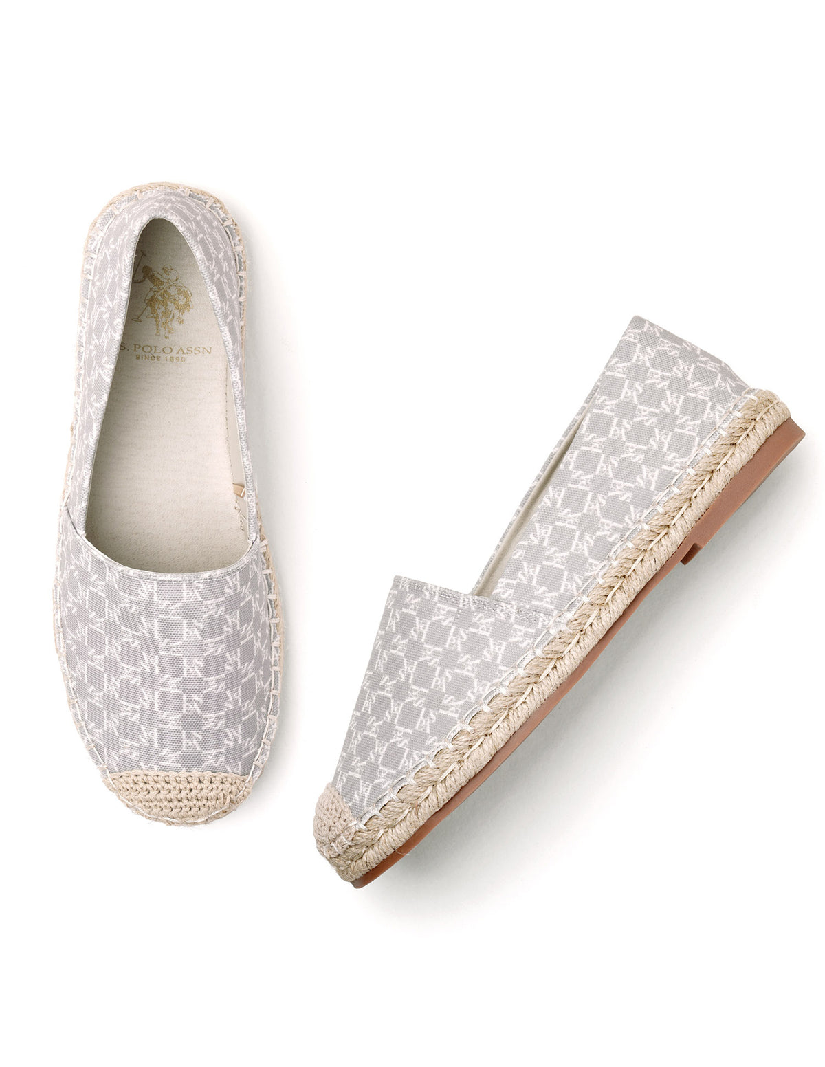 | Round toe | Panelled upper with branding | Reinforced heel counter | Cushioned footbed | Textured outsole | Monogram printed pattern