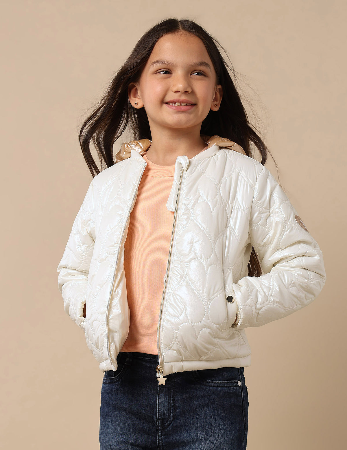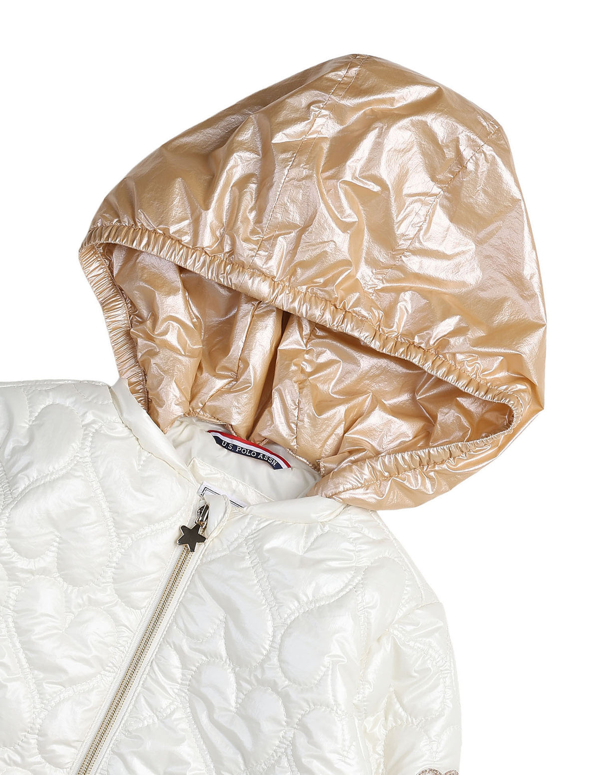 | Detachable hood | Stand neck | Full zipper closure | Long sleeves | Two pockets | Quilted construction | Solid pattern |