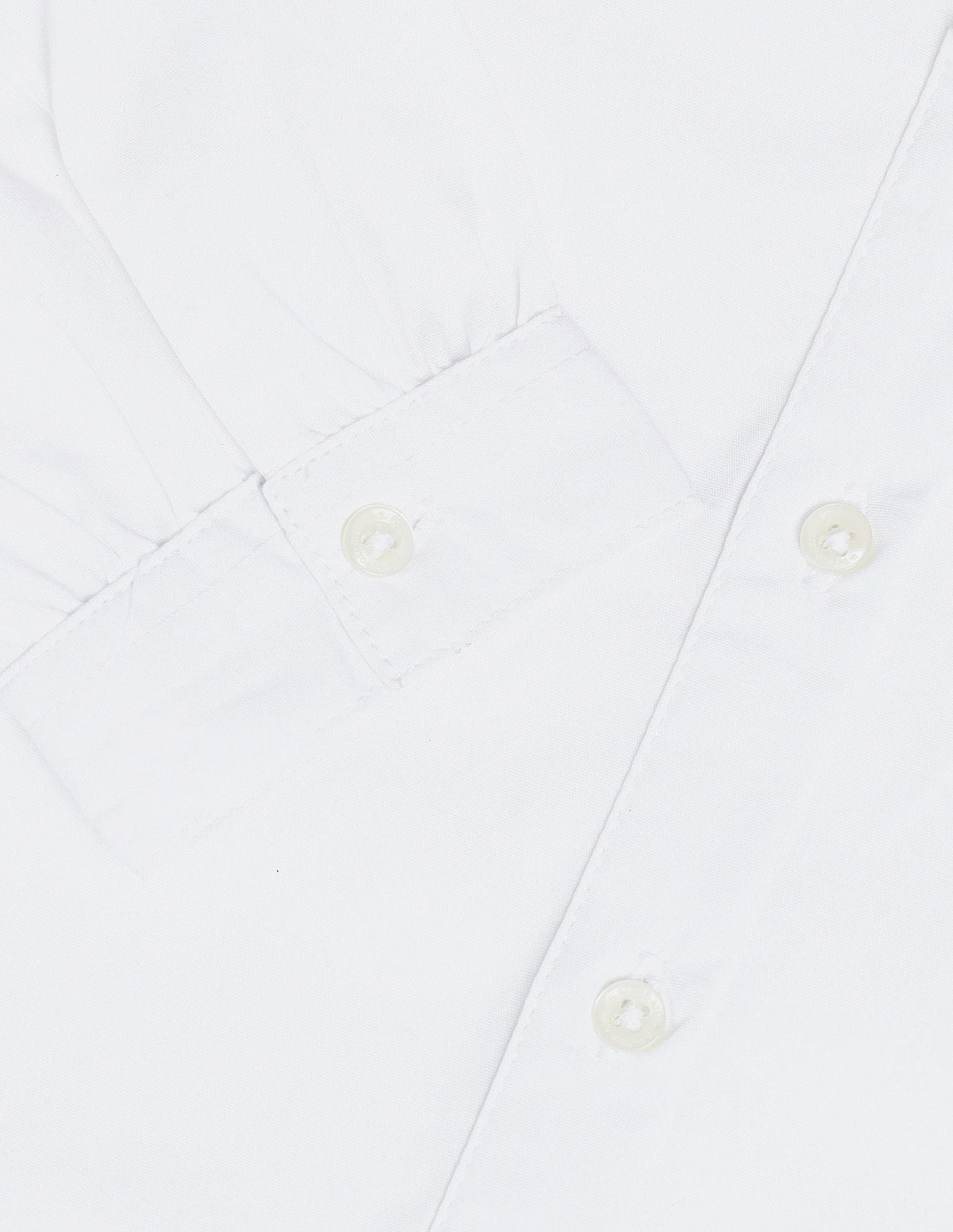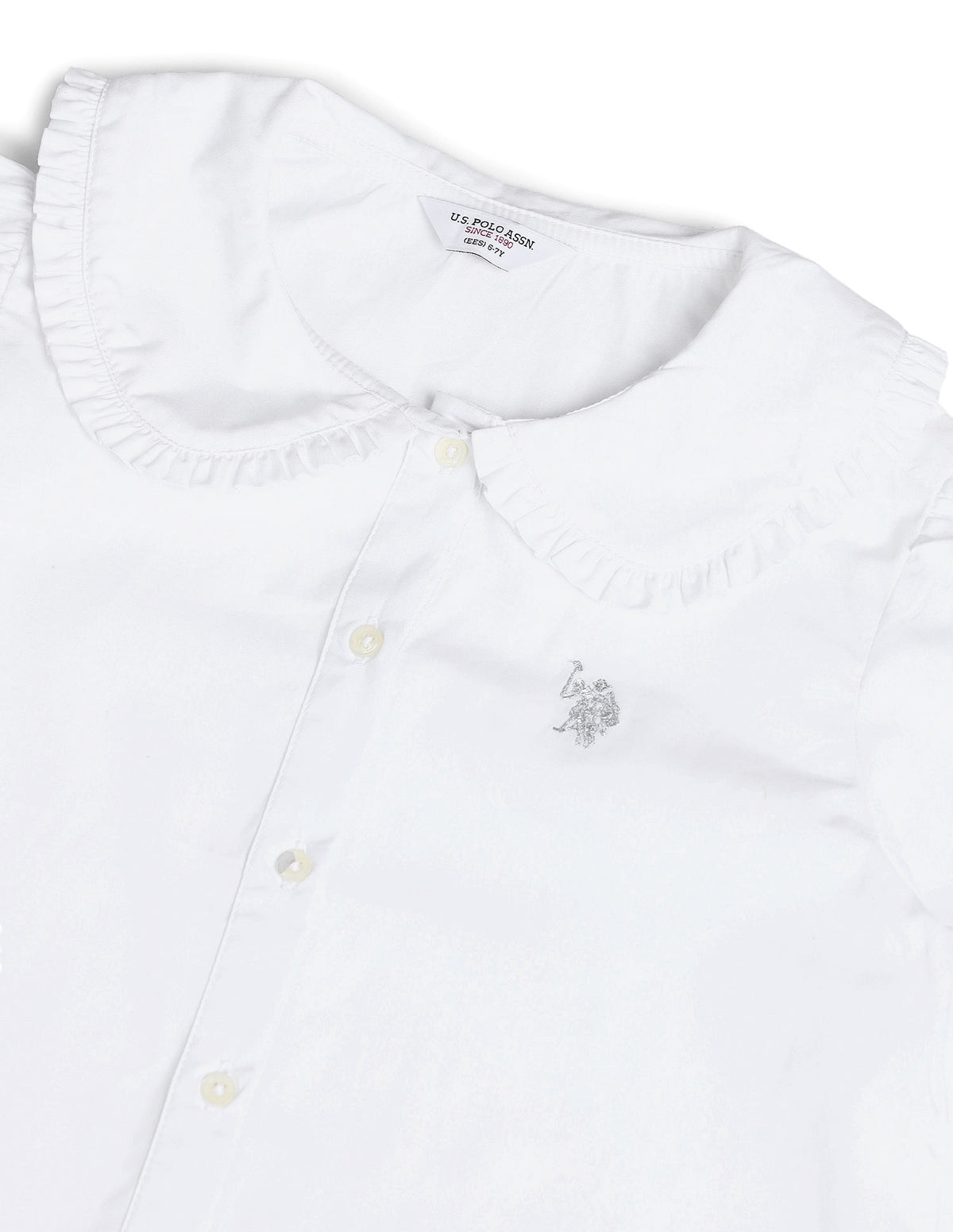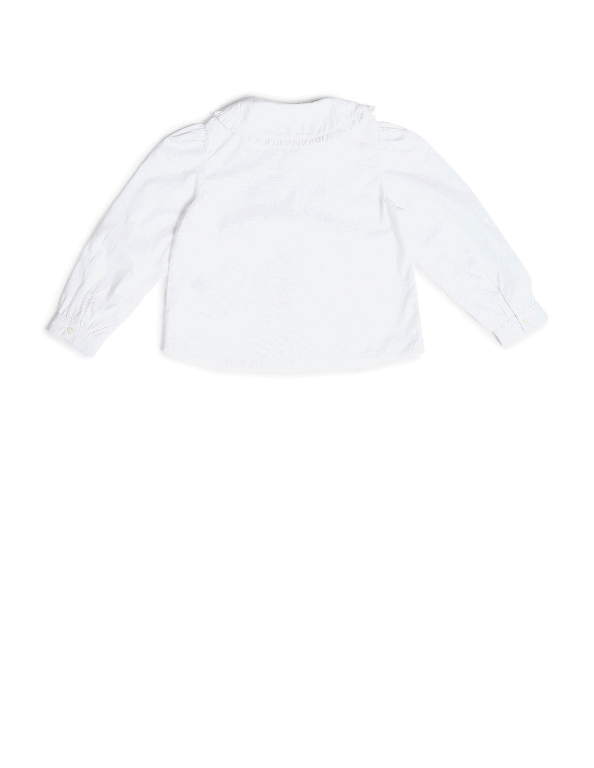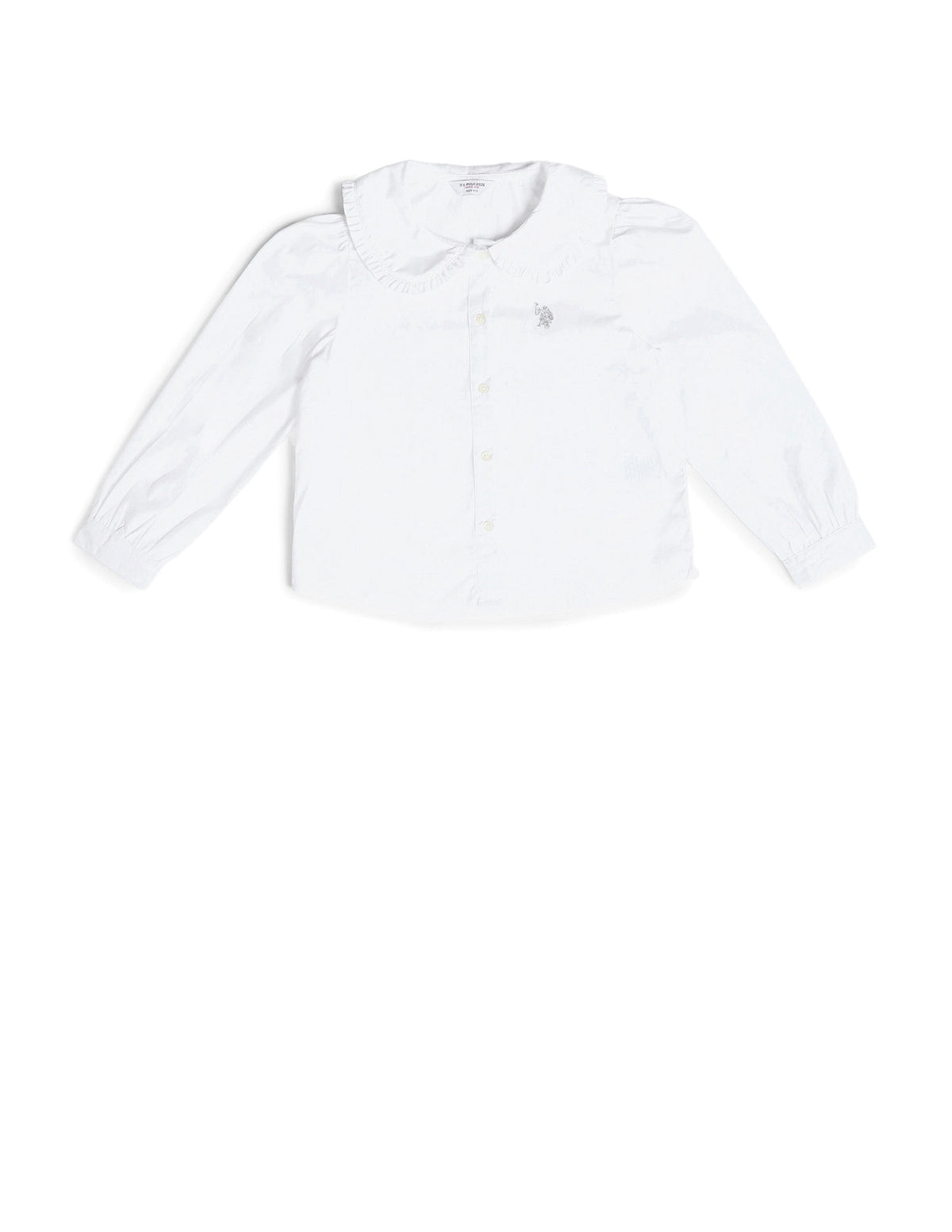 | Peter pan collar with frill at hem | Logo at chest | Full button closure | Long sleeves with gathered hems | Straight hemline | Solid pattern | Regular weave | Regular fit |