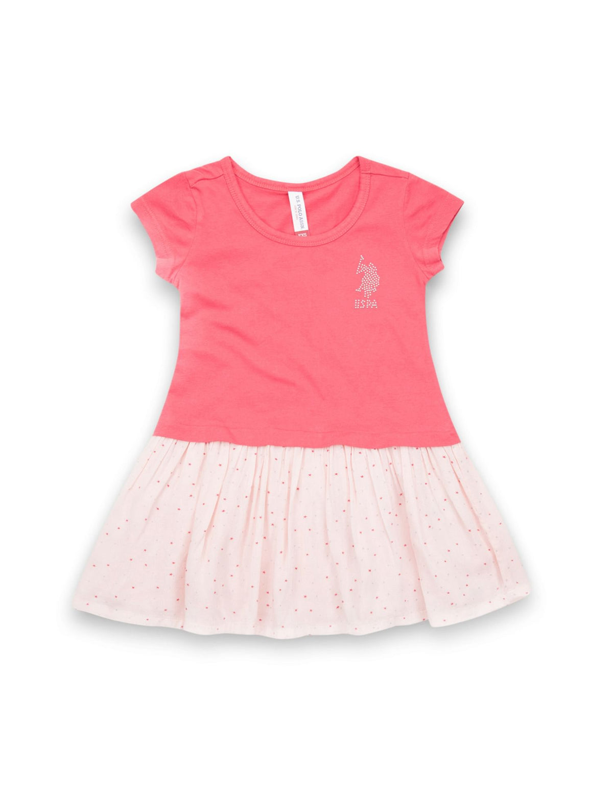 Story: From U.S. Polo Assn. comes this unique fit and flare dress that is bound to get your girl noticed. Made from a knit fabric, this piece gives the illusion of her wearing a t-shirt and a skirt. Style it with a pair of ballet flats for a look she'll love wearing to parties this season.