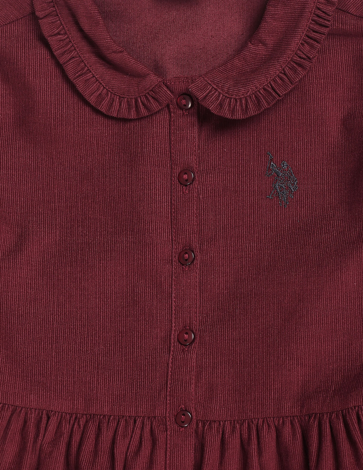- Ruffled collar and sleeve hems