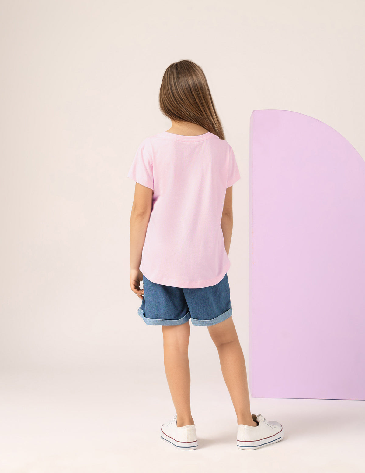 | Ribbed crew neck | Short sleeves | Curved hemline | Brand printed pattern | Knitted | Regular fit |