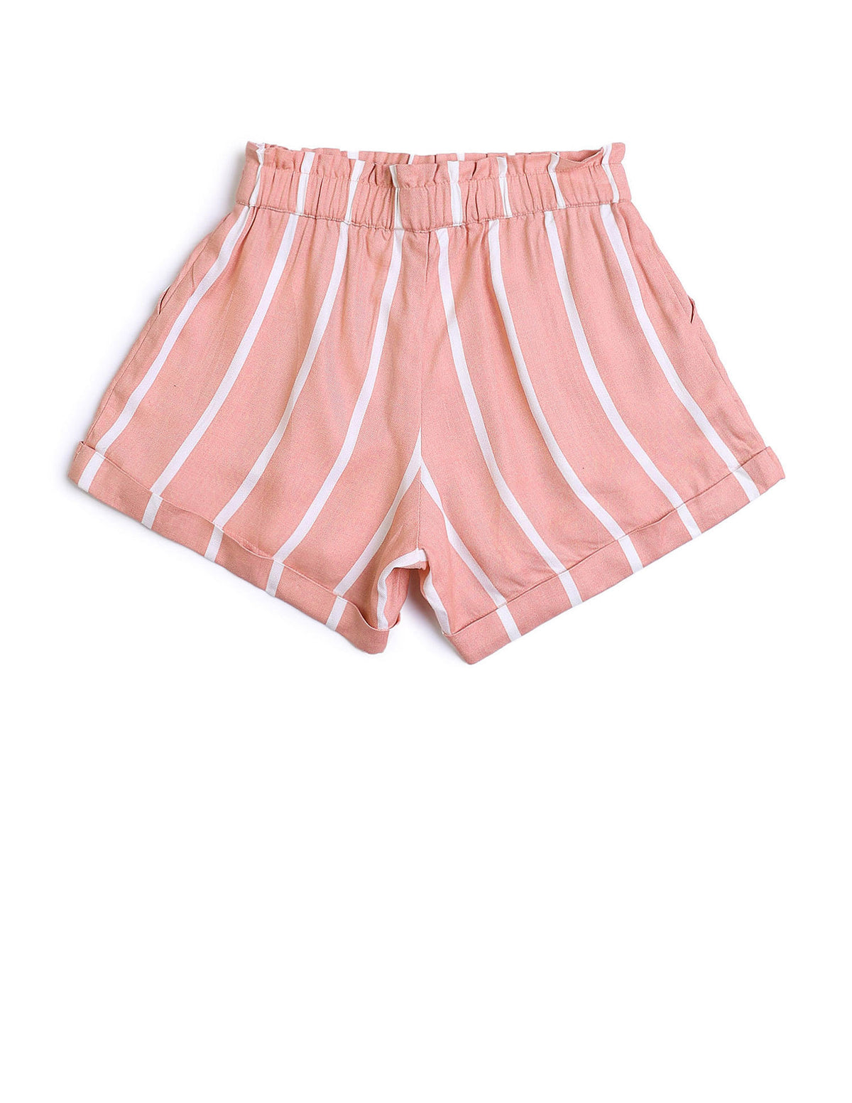 | Top: | Cuban collar | Logo embroidered at chest | Full button placket | Short sleeves | Straight hemline | Vertical striped pattern | Short: | Mid-rise waist | Elasticated waistband | Vertical striped pattern |