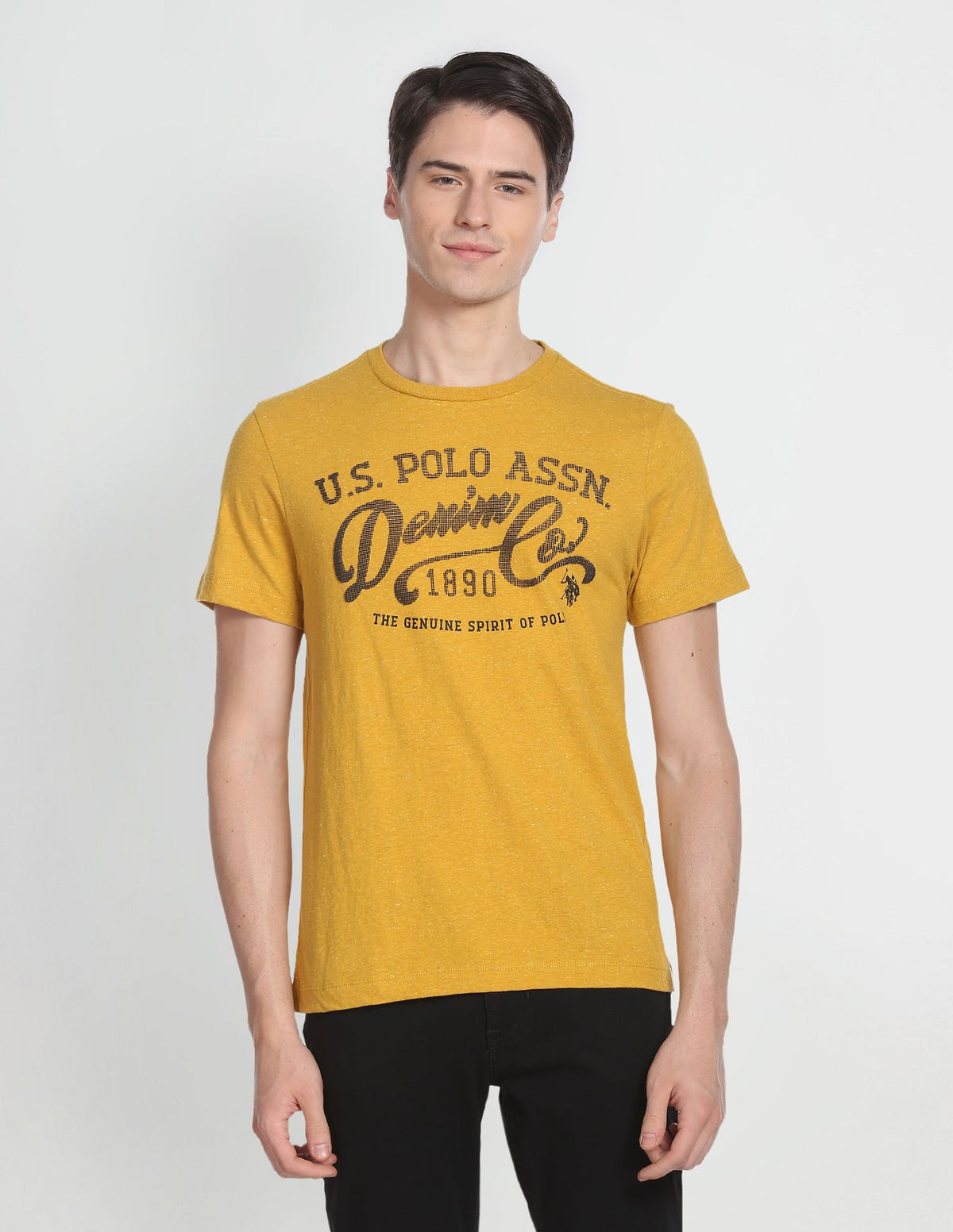 - Textured typographic printed and heathered pattern