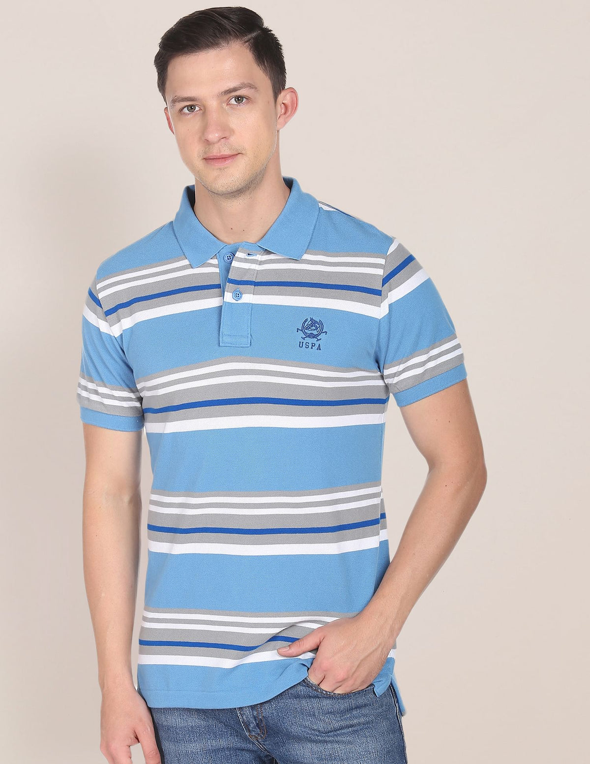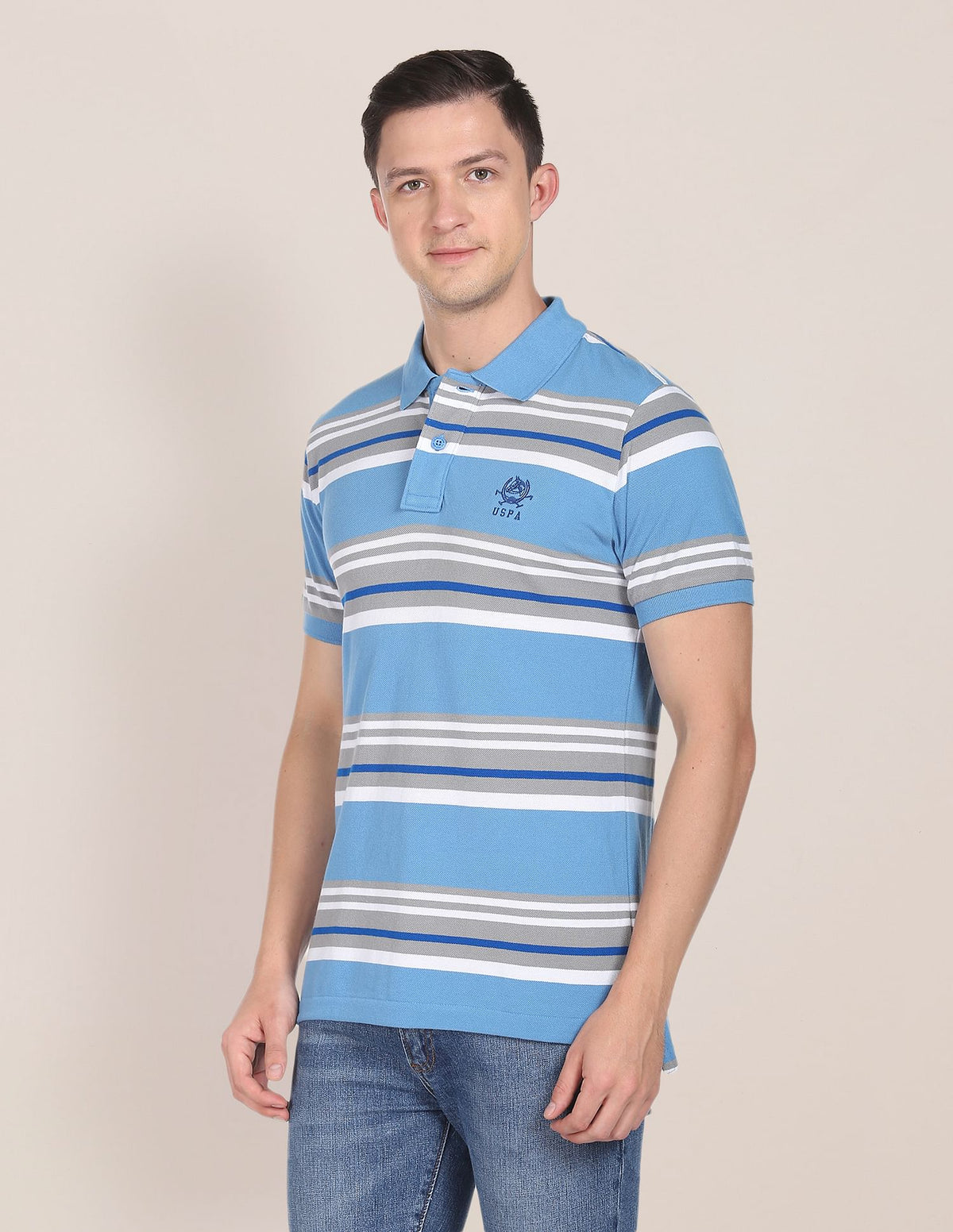 Horizontal Stripe Cotton Polo Shirt
