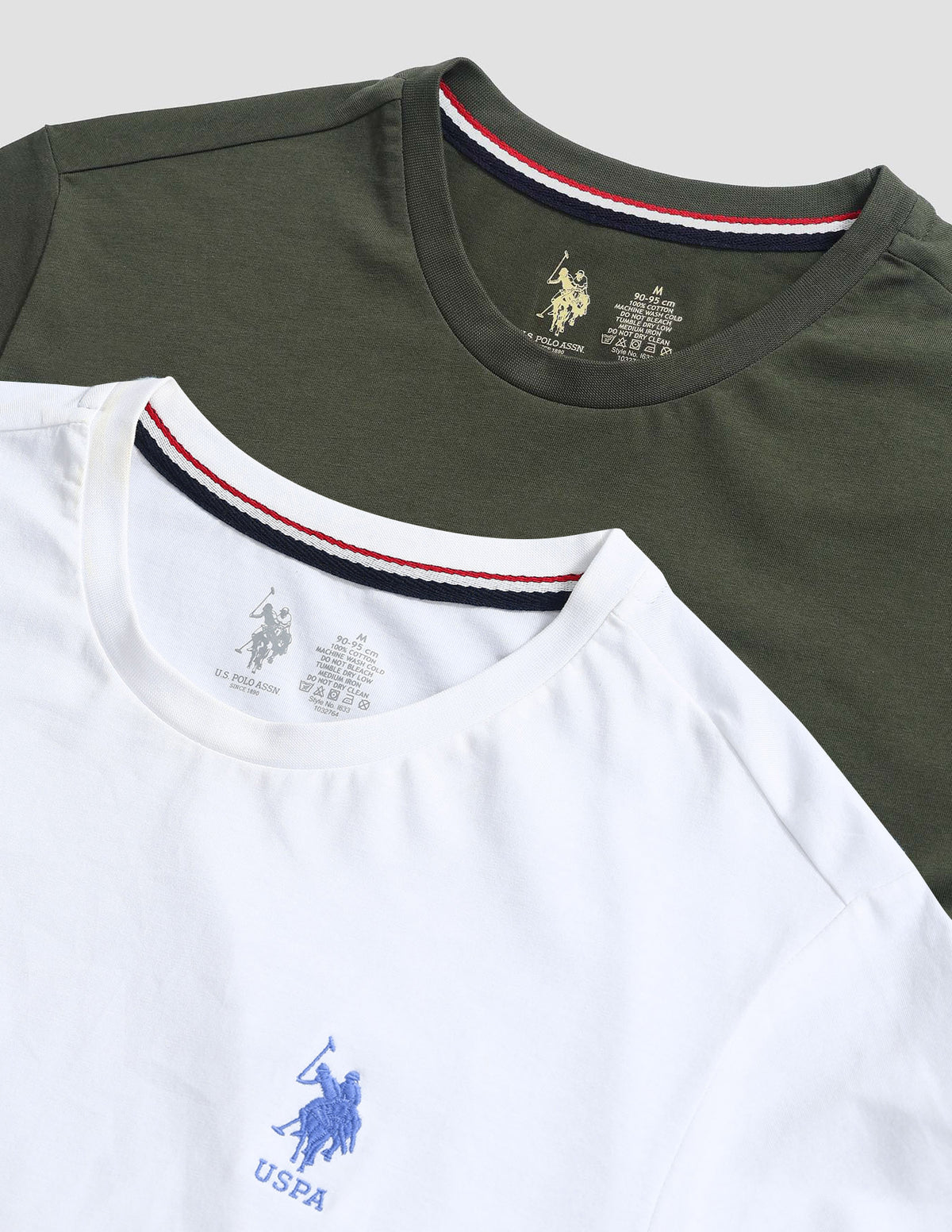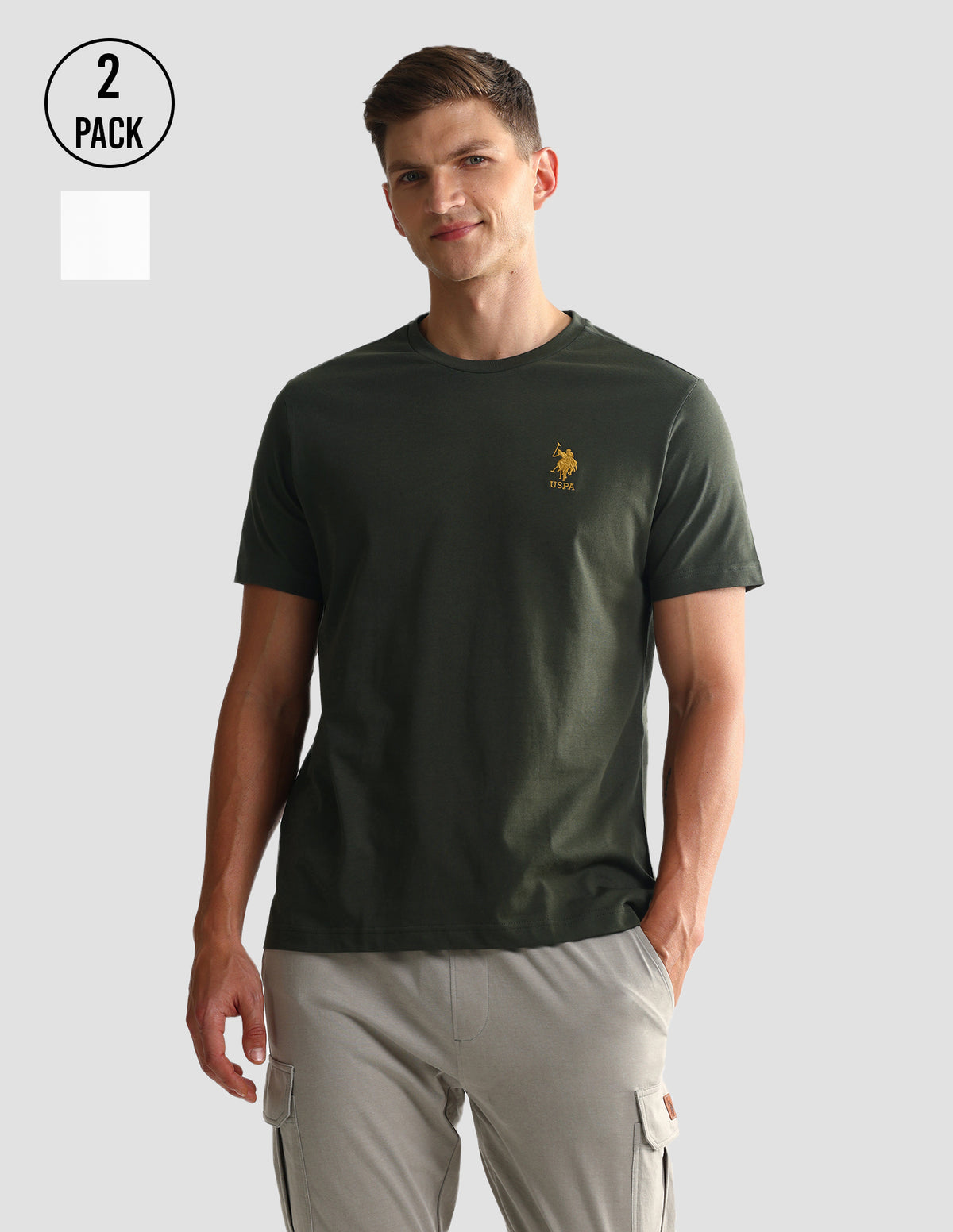 | Pack of 2: | Dedicated rib at crew neck ensures shape retention that withstands repeated wash and wear | Short sleeves for easy and unrestricted movement | Solid pattern with tonal logo at the chest ensures versatility | Knit construction ensures the material is comfortable | Country Of Origin - India