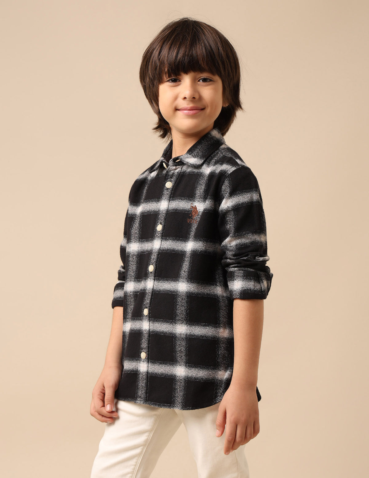 Story: Boys' casual checked shirt offers a smart and versatile look for various occasions.