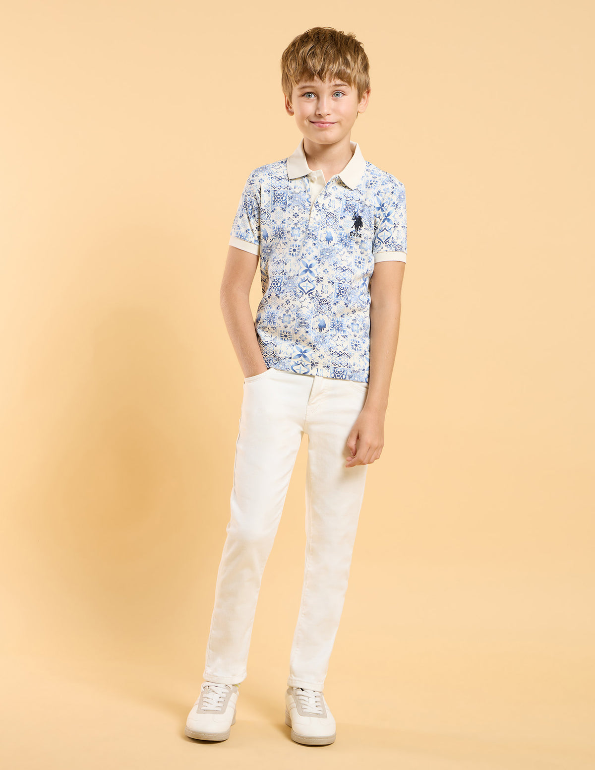 Boys All Over Printed Regular Fit Polo Shirt