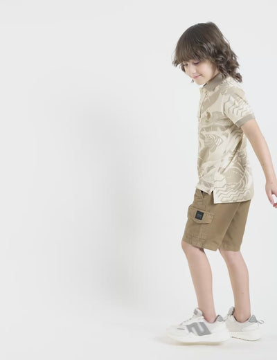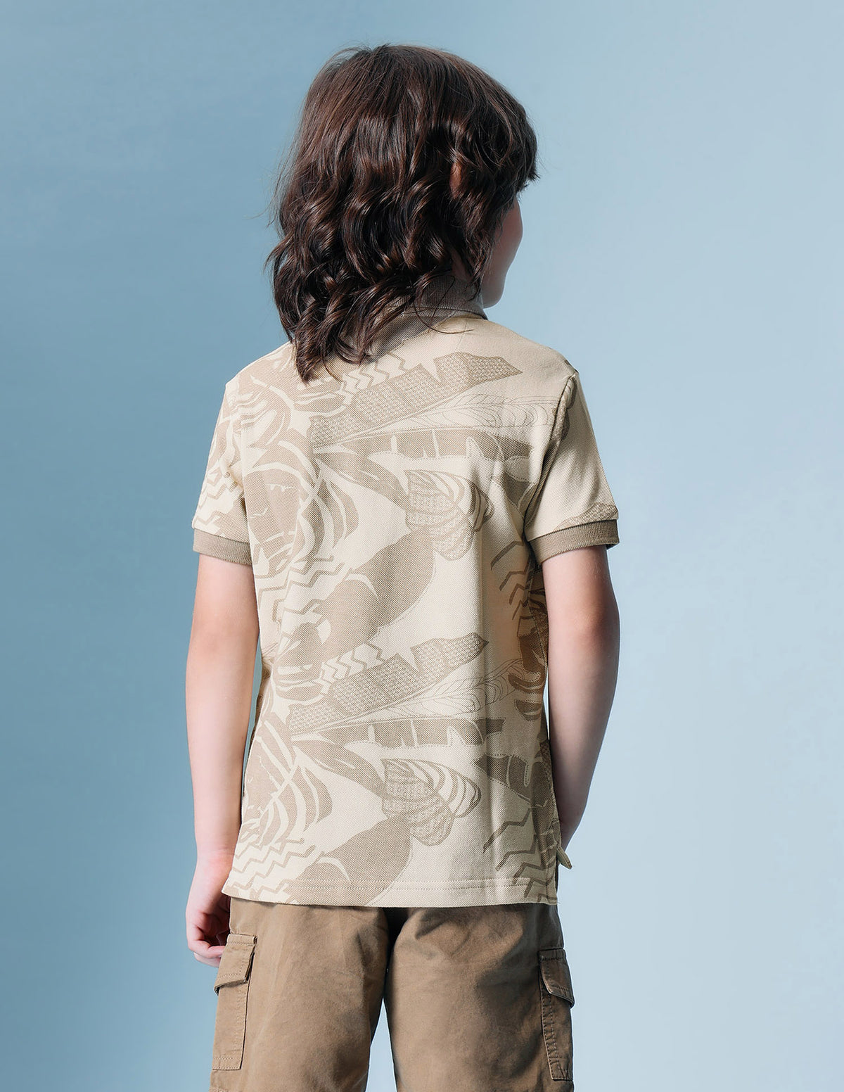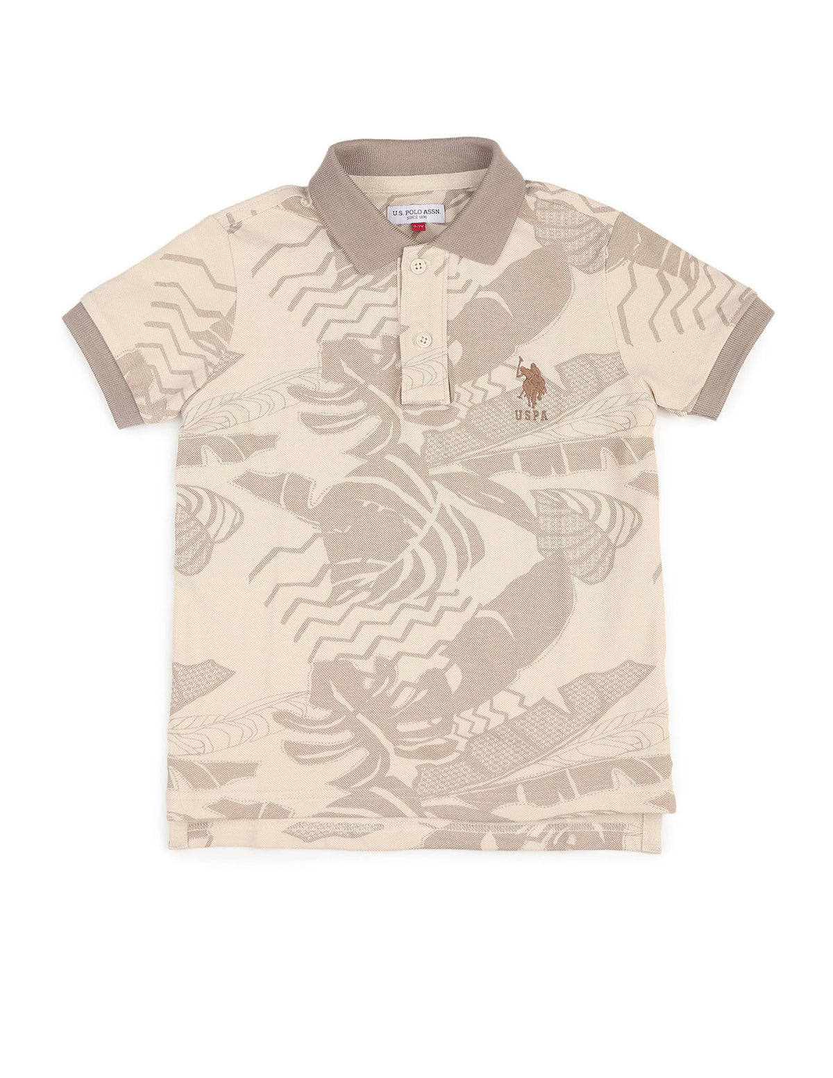 Story: Tropical cool meets casual style in this boys' leaf-print all over printed polo, perfect for laid-back summer days.