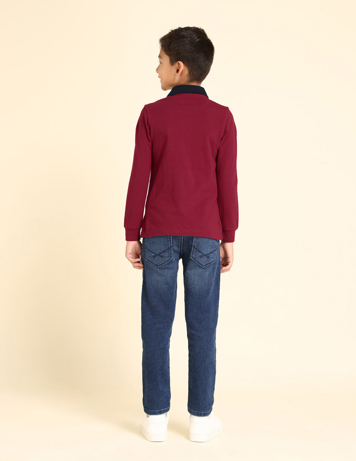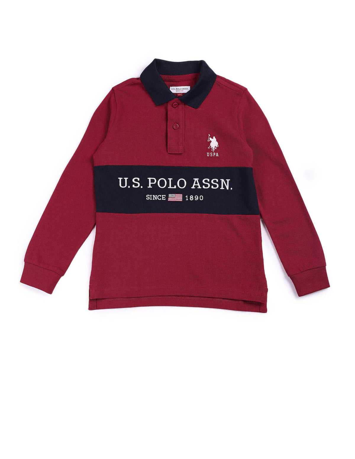 | Contrast polo collar | Logo at chest | Short button placket | Long sleeves | Ribbed collar and sleeve hems | Uneven vented hem | Brand printed pattern | Pique knit | Regular fit |