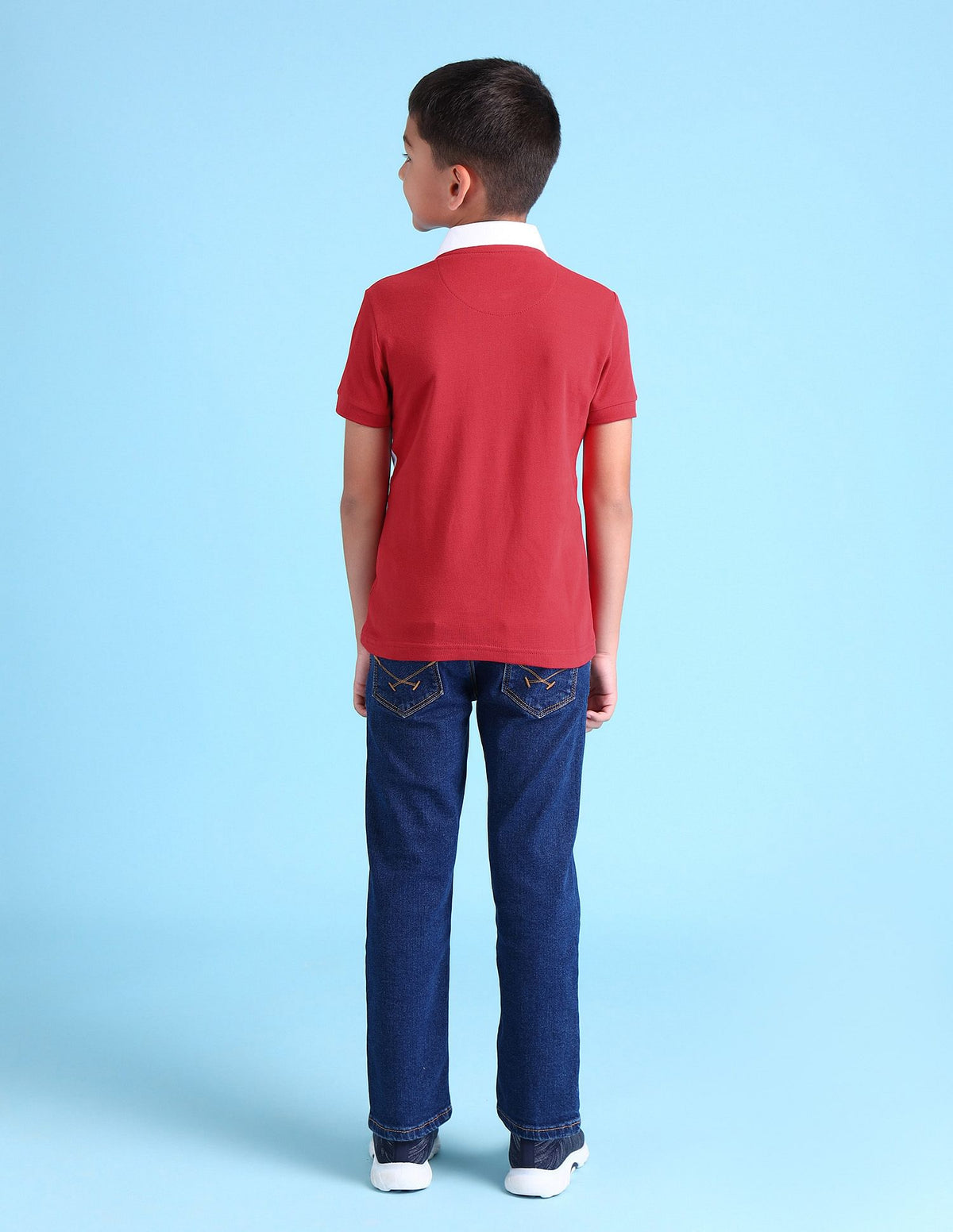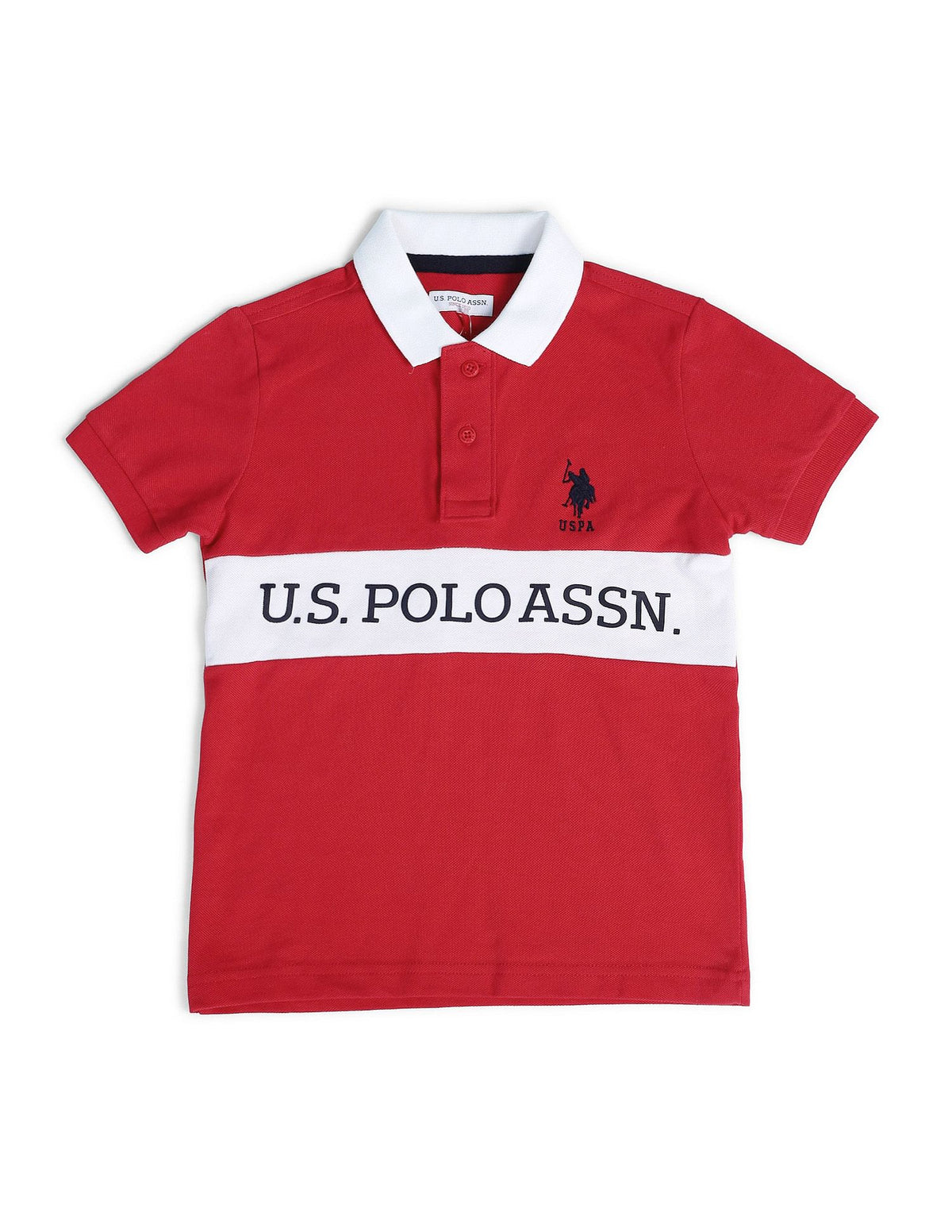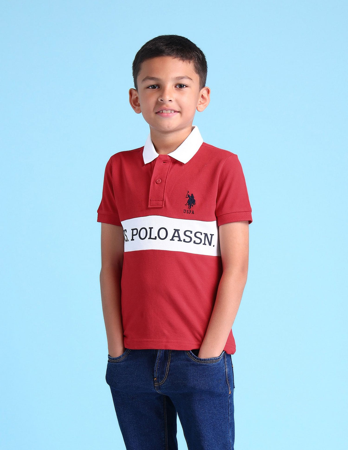 | Polo collar | Short button placket | Short sleeves | Ribbed collar and sleeve hems | Uneven vented hem | Brand printed pattern | Regular fit |