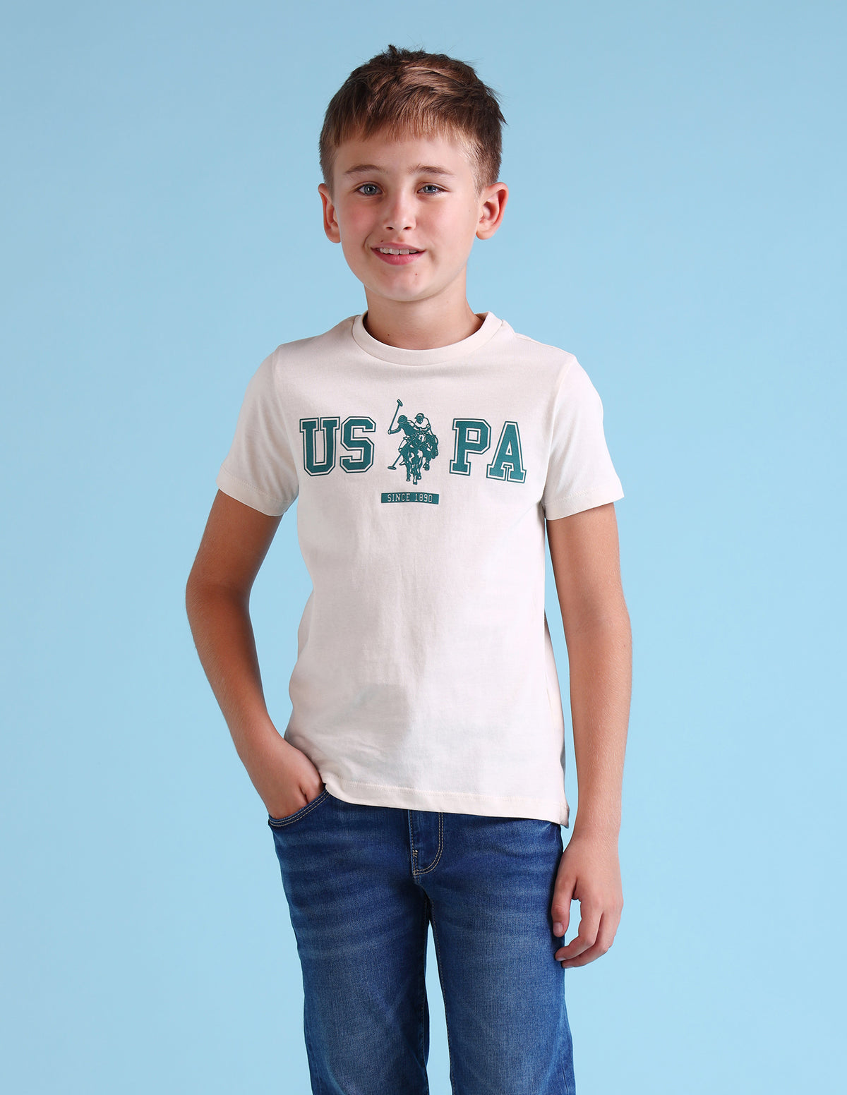 Story: Boys' brand printed t-shirt for casual style. Make a statement with this comfortable and trendy piece, perfect for everyday wear.
