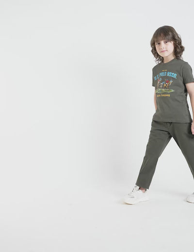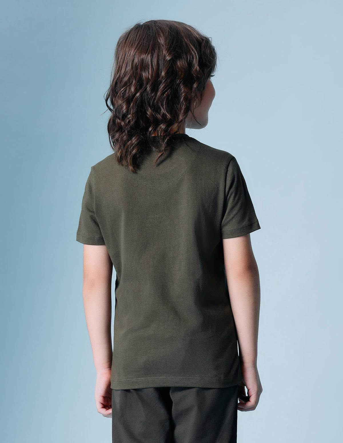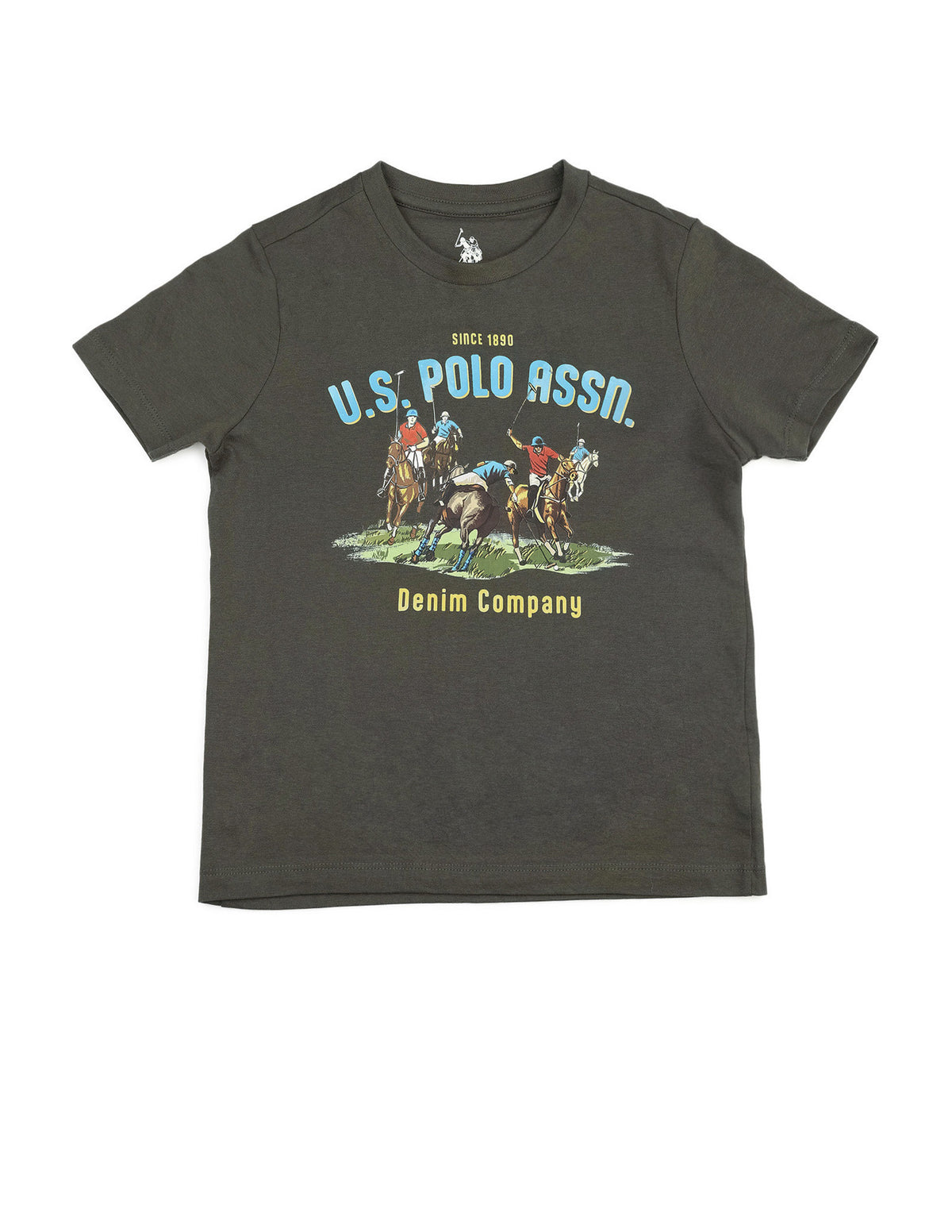 Story: Make a statement with this boys' round neck graphic t-shirt, featuring a cool logo design for casual, eye-catching style.